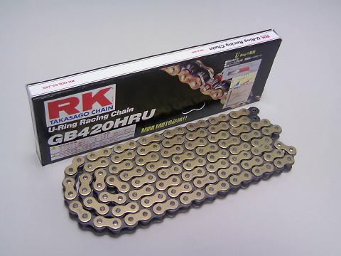 最近のロードコースミニバイク耐久レースの盛り上がりに合わせてRKさんがスッゴイチェーンを発売しました。軽量でフリクションロスが少ない、このチェーンに交換すると、自然とバイクが速くなる(笑)ワタシ達重量級のライダーにとって減量に替わる魔法の部品です。