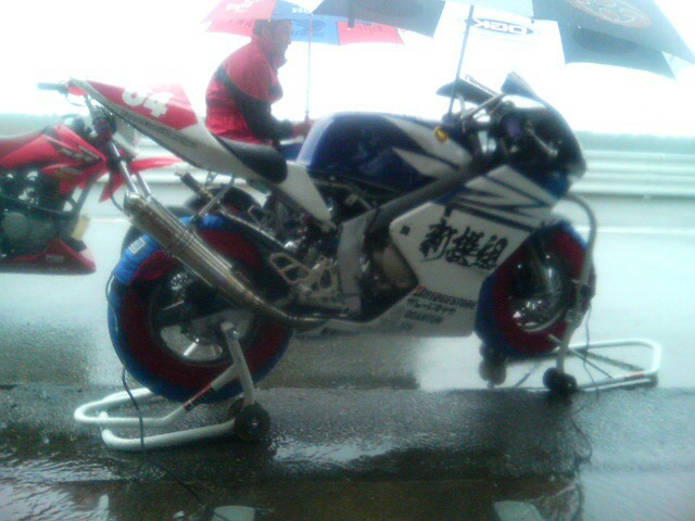 AMEが軽〜く振ったり止んだりと路面の状況は良くはありませんでしたがそれぞれがレース前に乗れたという事に関しては満足