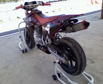 今日は予定通り練習に行ってきました。途中S・S・Eへ寄り注文しておいた部品を受け取り、HOBBYへ到着したのが11時半くらい。。。予想以上に時間がかかりました。ポカポカ陽気に外出された方も多かったのでしょう、国道は随分混んでいた様に思えます。到着すると、TONYくんがヒトリでタイヤ交換、他はXR100が2台しかいません。。。