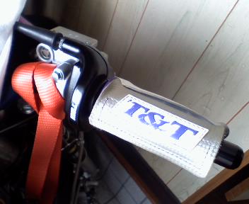 」って事で最近目立ちのグリップの交換をしました。ゴルフショップ店員イチオシの「スリックフィット」なるバイク乗りのココロを揺する魅力的な名称のグリップ。しかも色はブルー(ムラサキが欲しかったけど無いんです