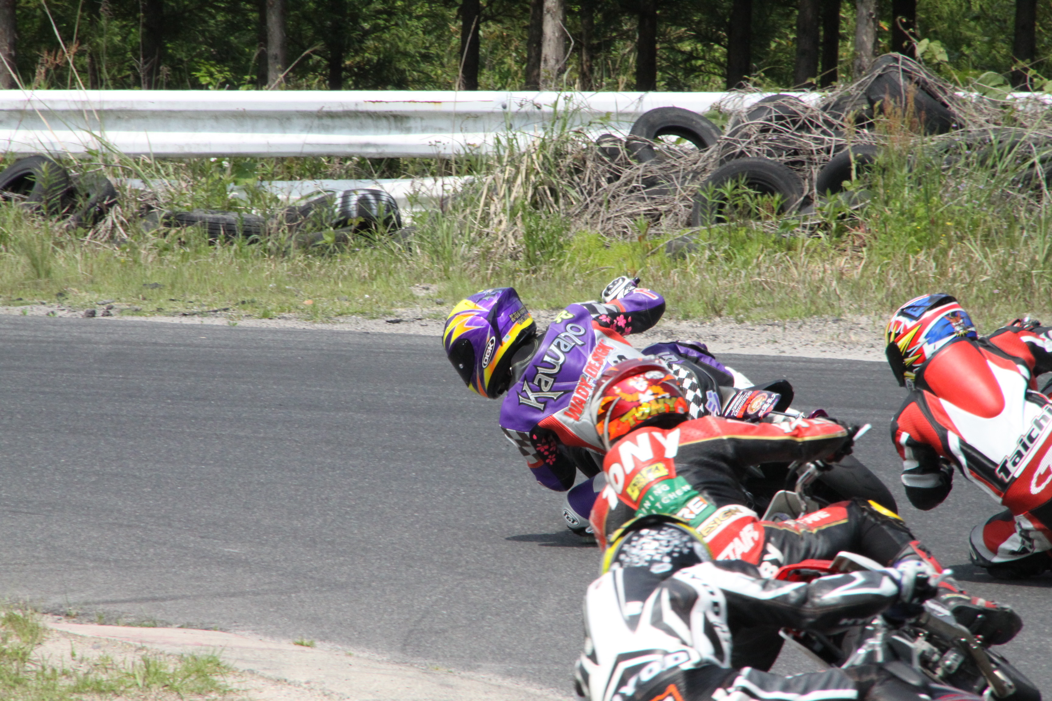 予定通りRay19はスタート直後から「アッ!」と言う間に視界からいなくなり、2位争いの内1台が転倒。ワタシ達4台のグループは4位争い。ココ最近よく絡むのですが#18Mボウくんと抜き差しを繰り返し結局最終的な順位は5位
