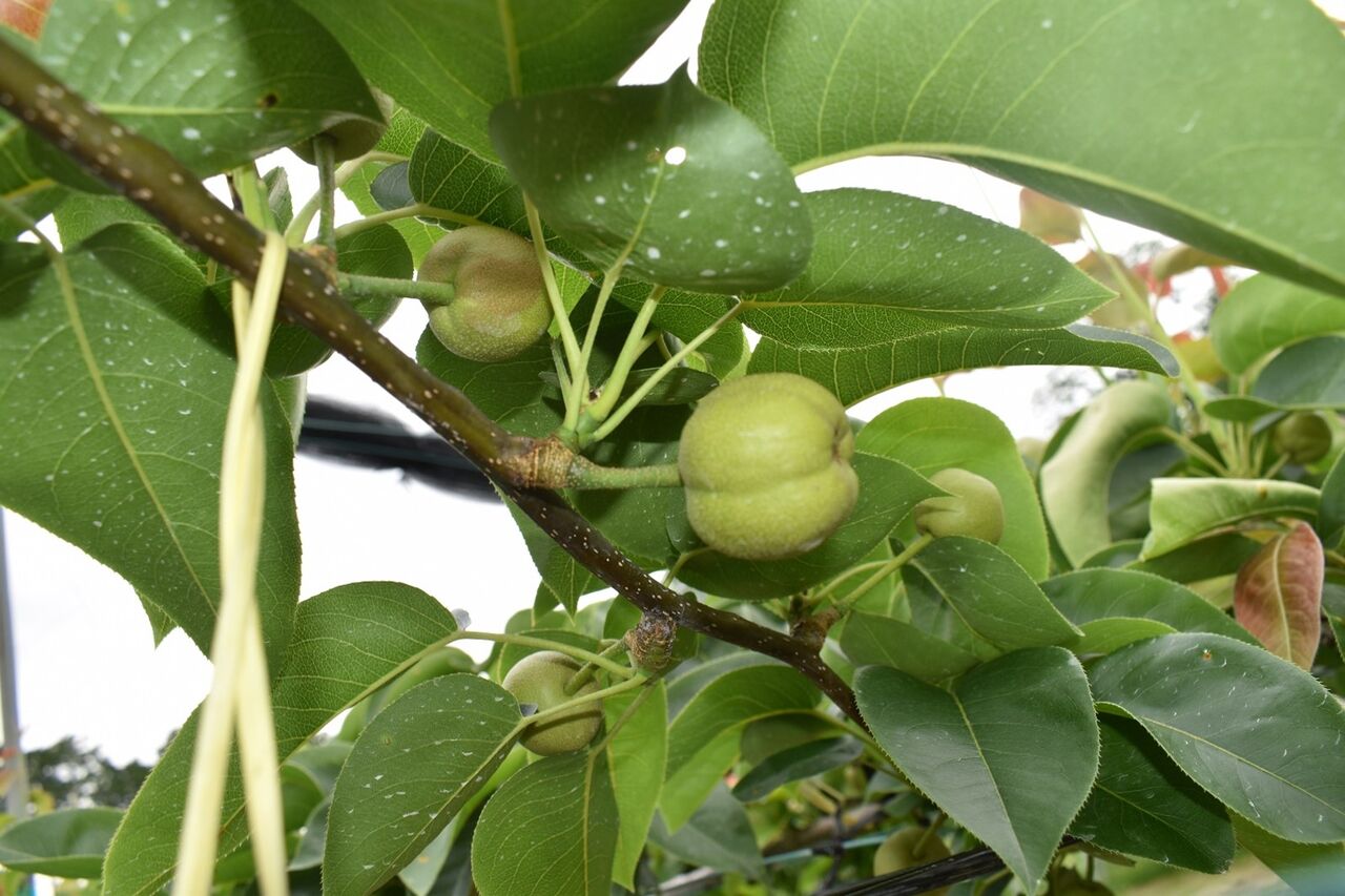 ゴルフボールくらいのナシの果実【筆者撮影】