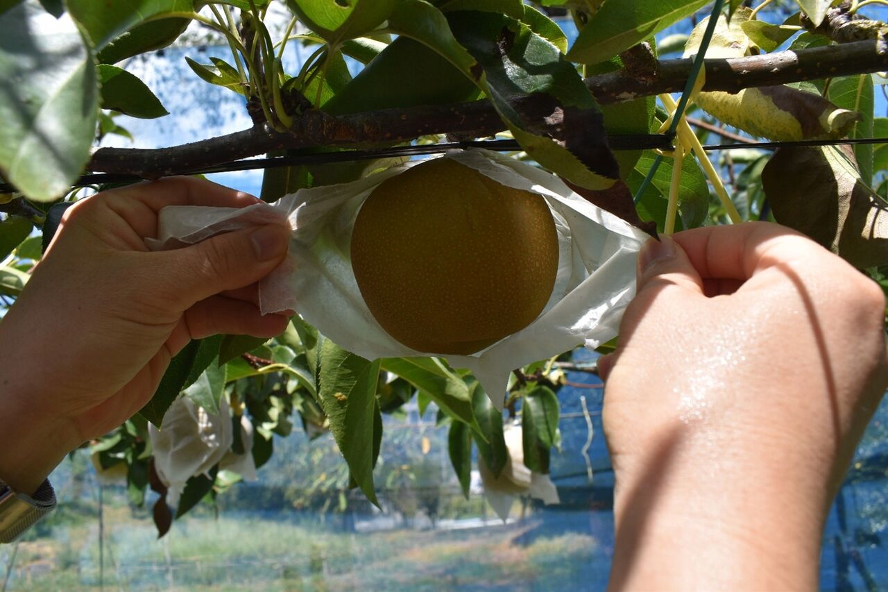 実は、今年は季節とともに果物がどのような影響を受けるか取材させていただくために、定期的に梨の作業を、お手伝いをさせていただきました。