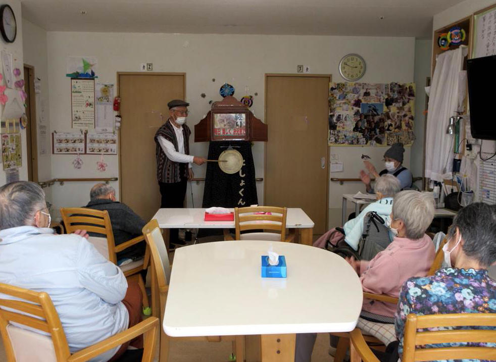・午前中の「ひまわりの会」の皆さんと違って グループホームの皆さんには 演目を変えて実施しています (できるだけ皆さんご存知で懐かしい昔話を 選んでいます)