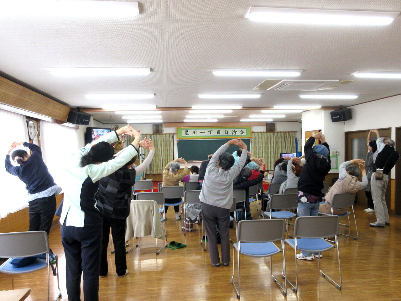 ・紙芝居の後は 地元ケアプラザからのお話 薬剤店からのお話などあり その後は「保土ヶ谷たいそう」でひと運動