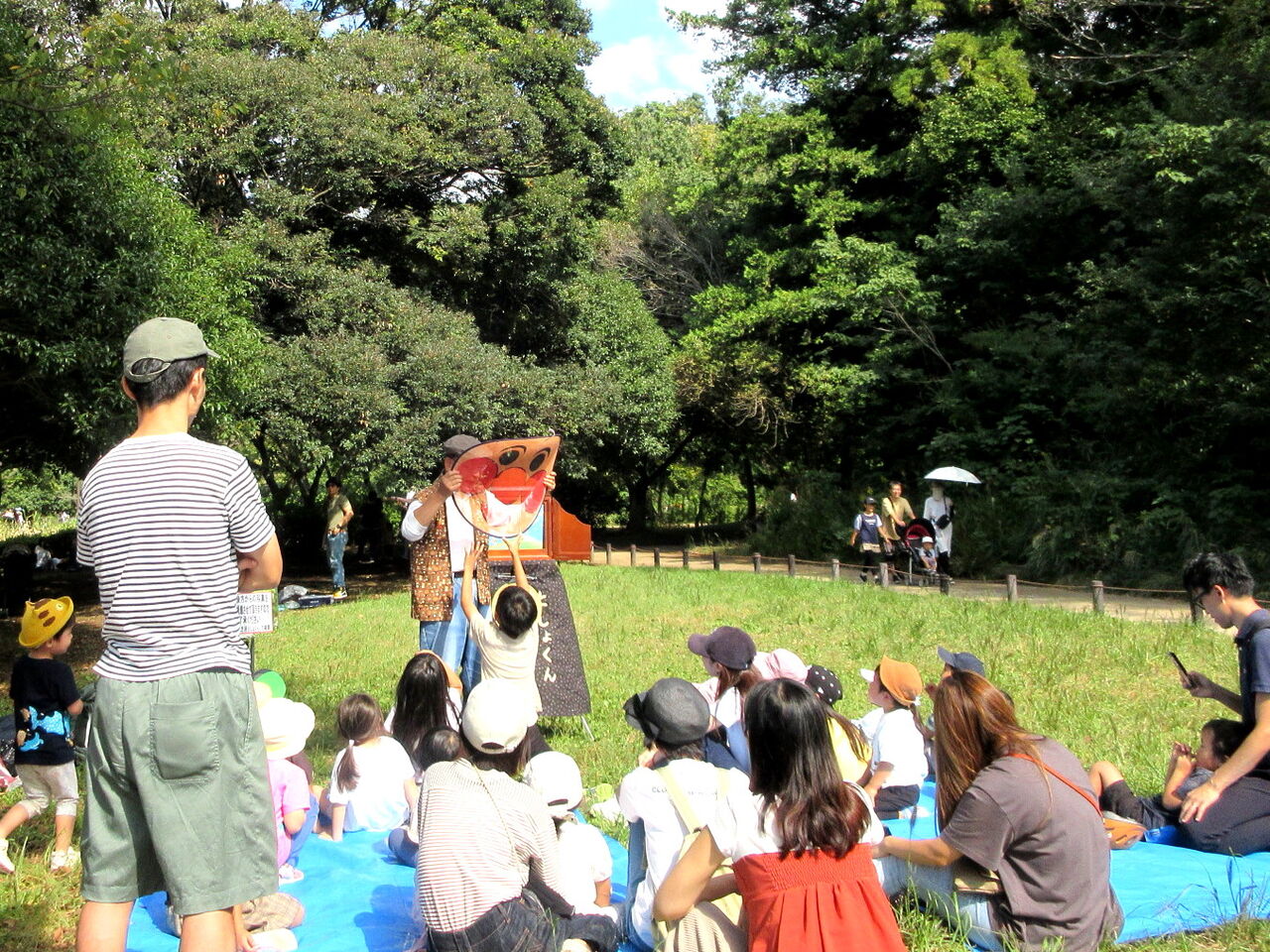 今日は 秋晴れの中 横浜市旭区のこども自然公園(大池公園)で 久しぶりの『大池紙芝居ライブ』を実施しました なんと今日は『100回目』の記念すべき日(かな?)です