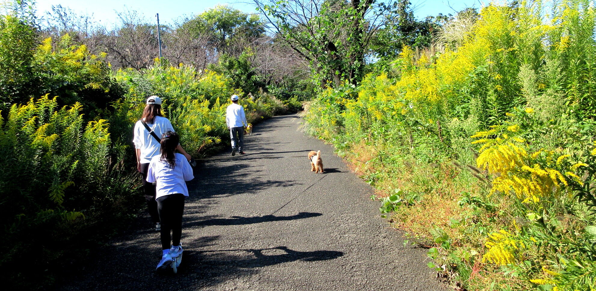 公園入口は 満開のセイタカアワダチソウ 空も雲一つなしの秋晴れで向かえてくれました