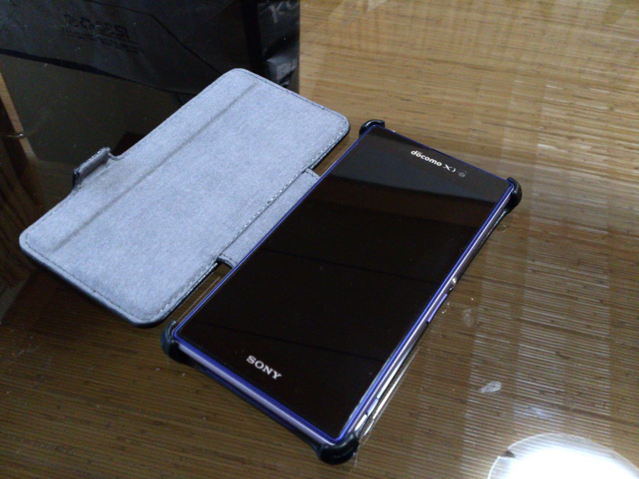 手帳型のケースを買ったそうです。大きい端末ですので、ちょうど良いかも。