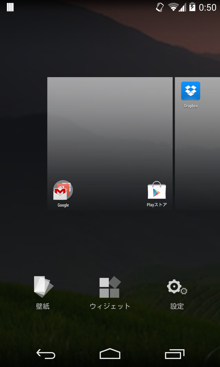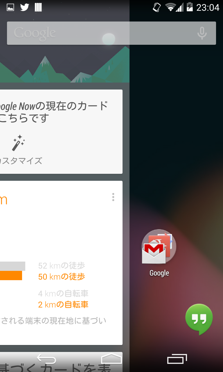 ホーム画面左にGoogleNowが設置されました。