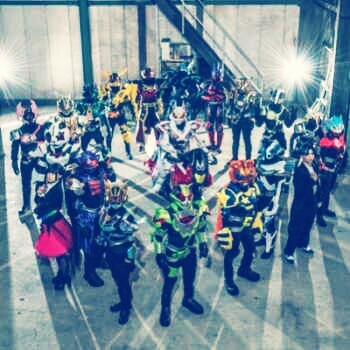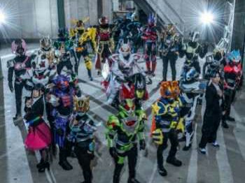 「仮面ライダーギーツ」の世界のライダーの大集合がフィギュアで再現された写真
