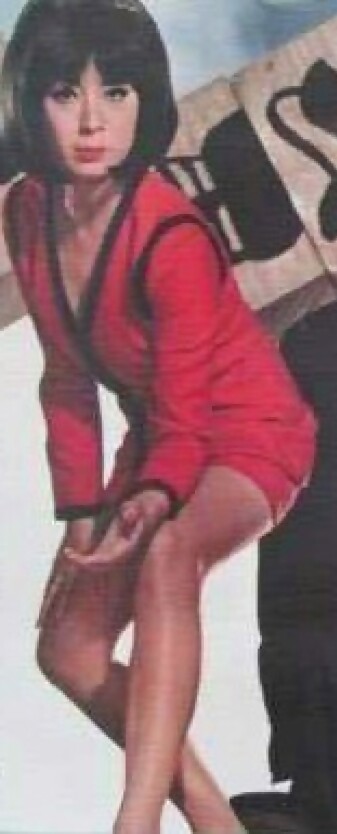 ミニスカート姿の女賭博師役の時の八代万智子さんの写真