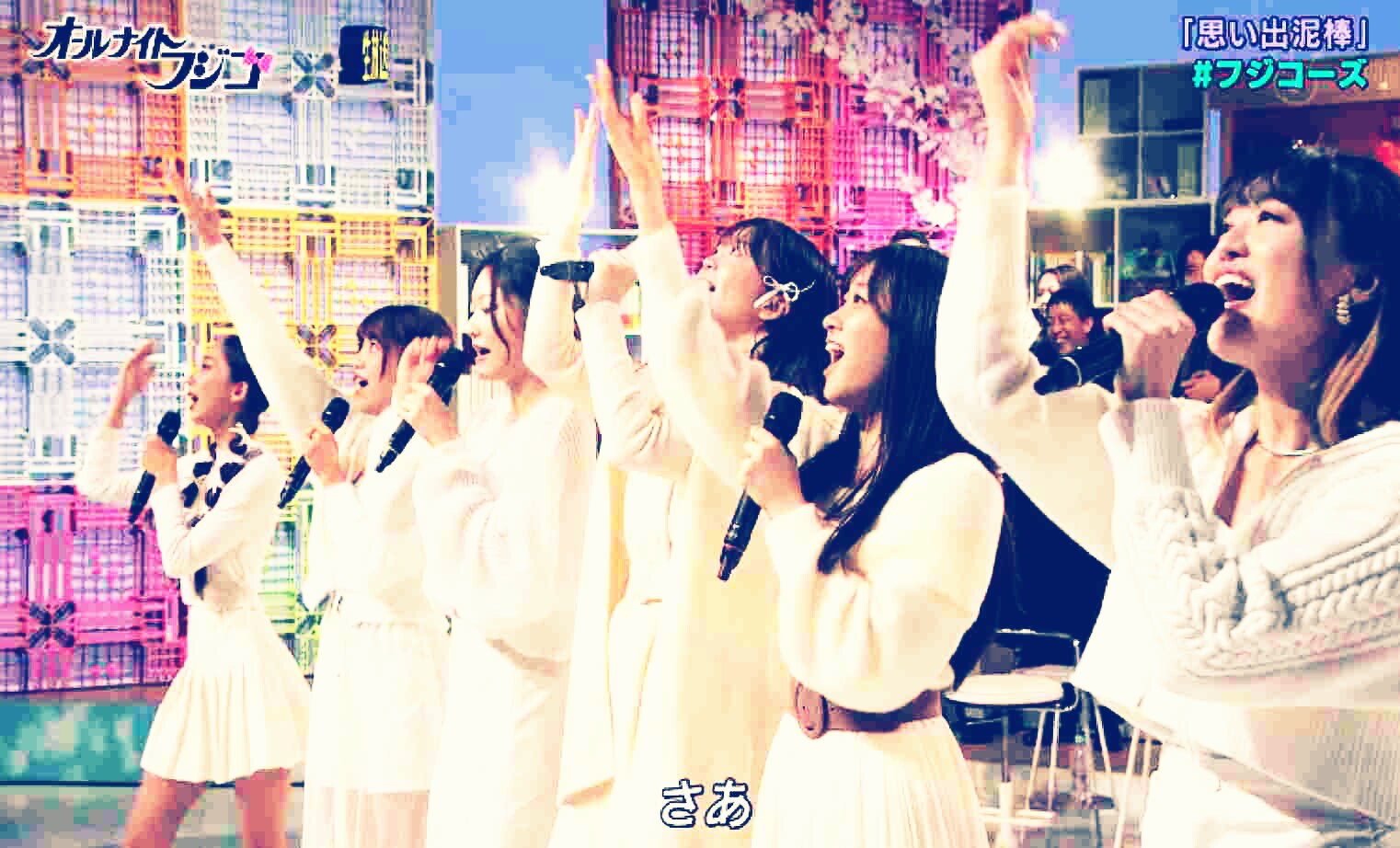 「思い出泥棒」で、和智日菜子ちゃんと出町杏奈ちゃんが歌のパートを担当なさっている時のフジコーズの写真