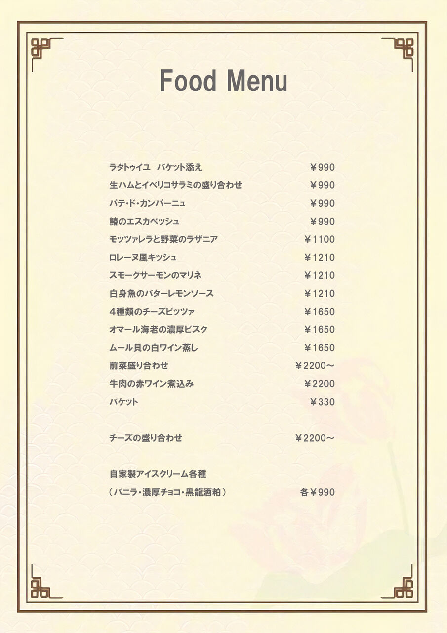 Y:フードメニュー