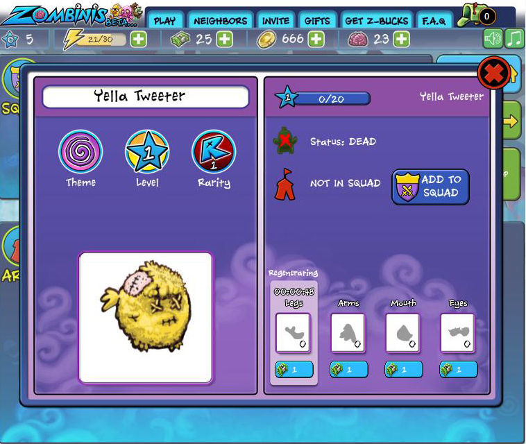 「Army」 をクリックすると詳細になり、戦ってるゾンビは「SQUAD」に入っています。