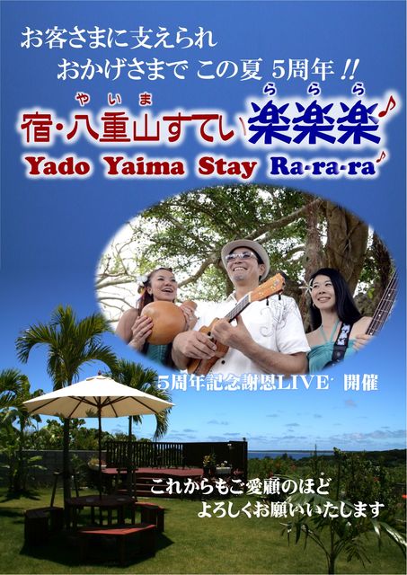 ※宿・八重山すてい楽楽楽♪のメール、ホームページ、ブログは残しておきますので、ご連絡等はメールにてお願いいたします。