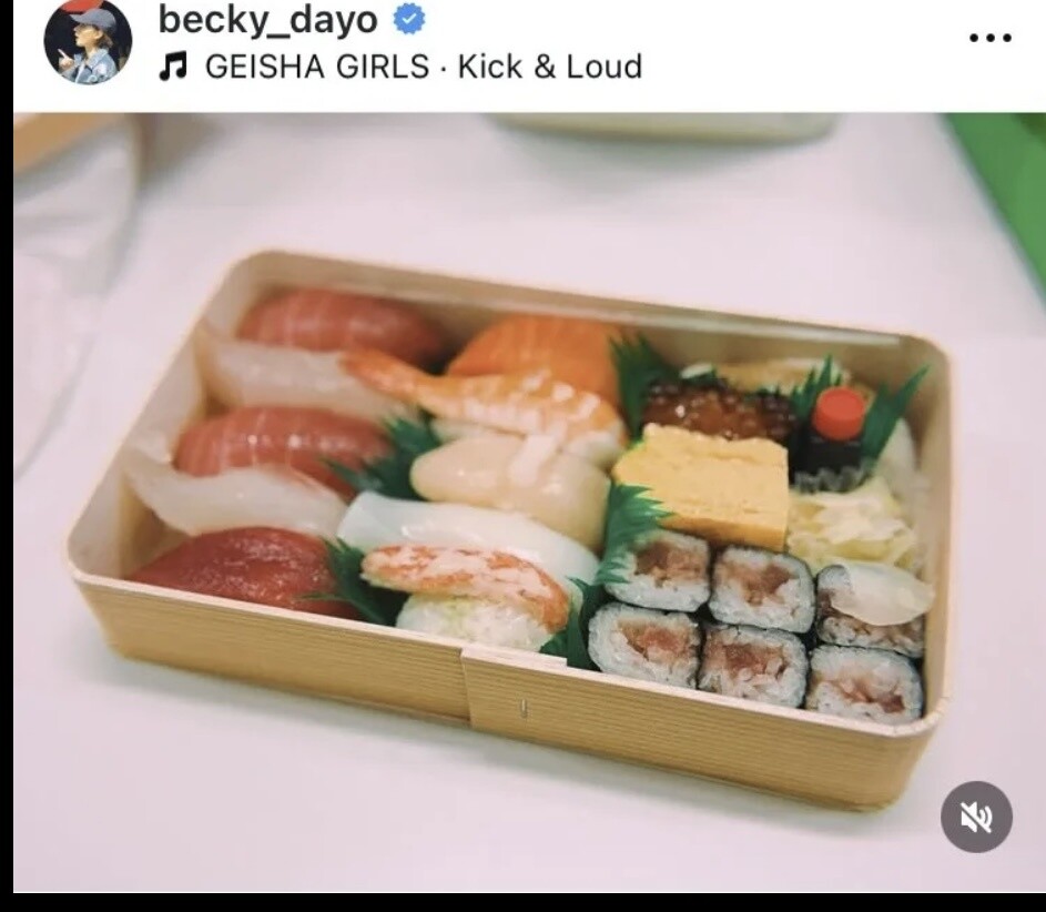 大量のお弁当が入っている箱がずらりと並んでいる。貼り紙には「松本人志様よりお弁当(お寿司)の差し入れをいただきました!!ありがとうございます!!」と書かれている。