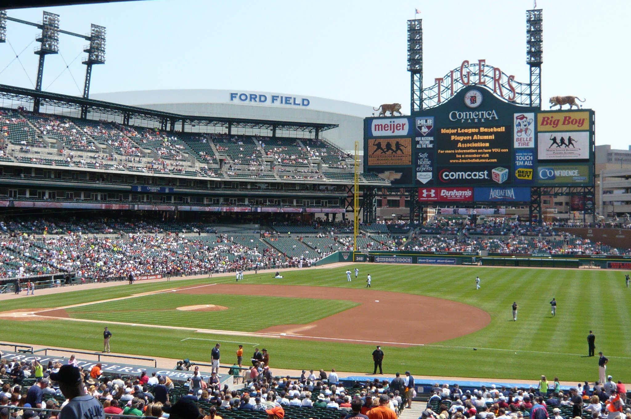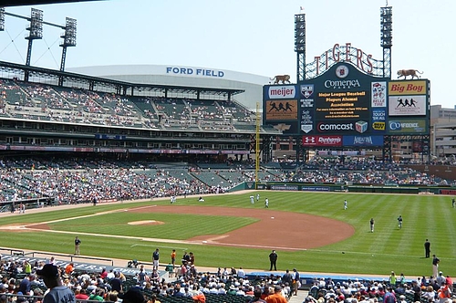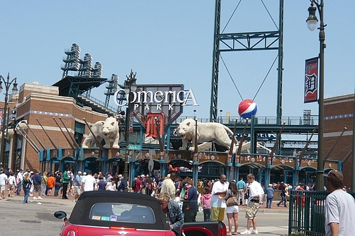 Salaの住む街から1時間位の場所に、地元デトロイトタイガースのホームスタジアム:コメリカパークがあります。ダウンタウンにあるので、試合のある日は周辺道路も人や車で大混雑!球場はイメージキャラクターの”虎”が沢山いるよ^^