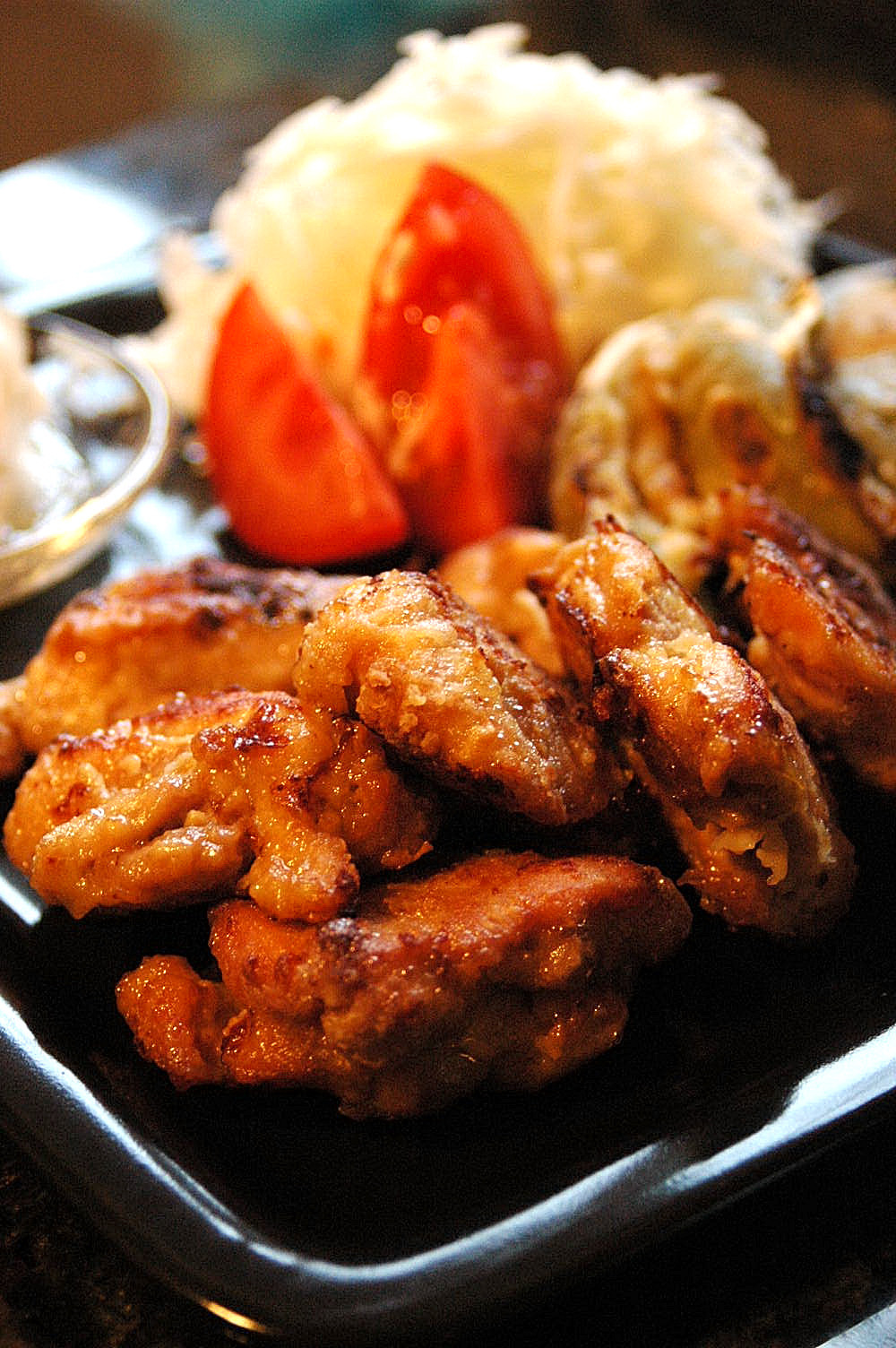ほんのり焦げたパリパリの皮目も芳ばしく、いつもより軽いサクっとした食感(竜田揚げみたいな感じ)に仕上がりました・゚・。;+;(´∀`*)☆;+;。・゚・。;+;☆;+;。