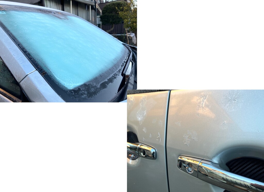 ドアには氷の花が咲いてました。🧊