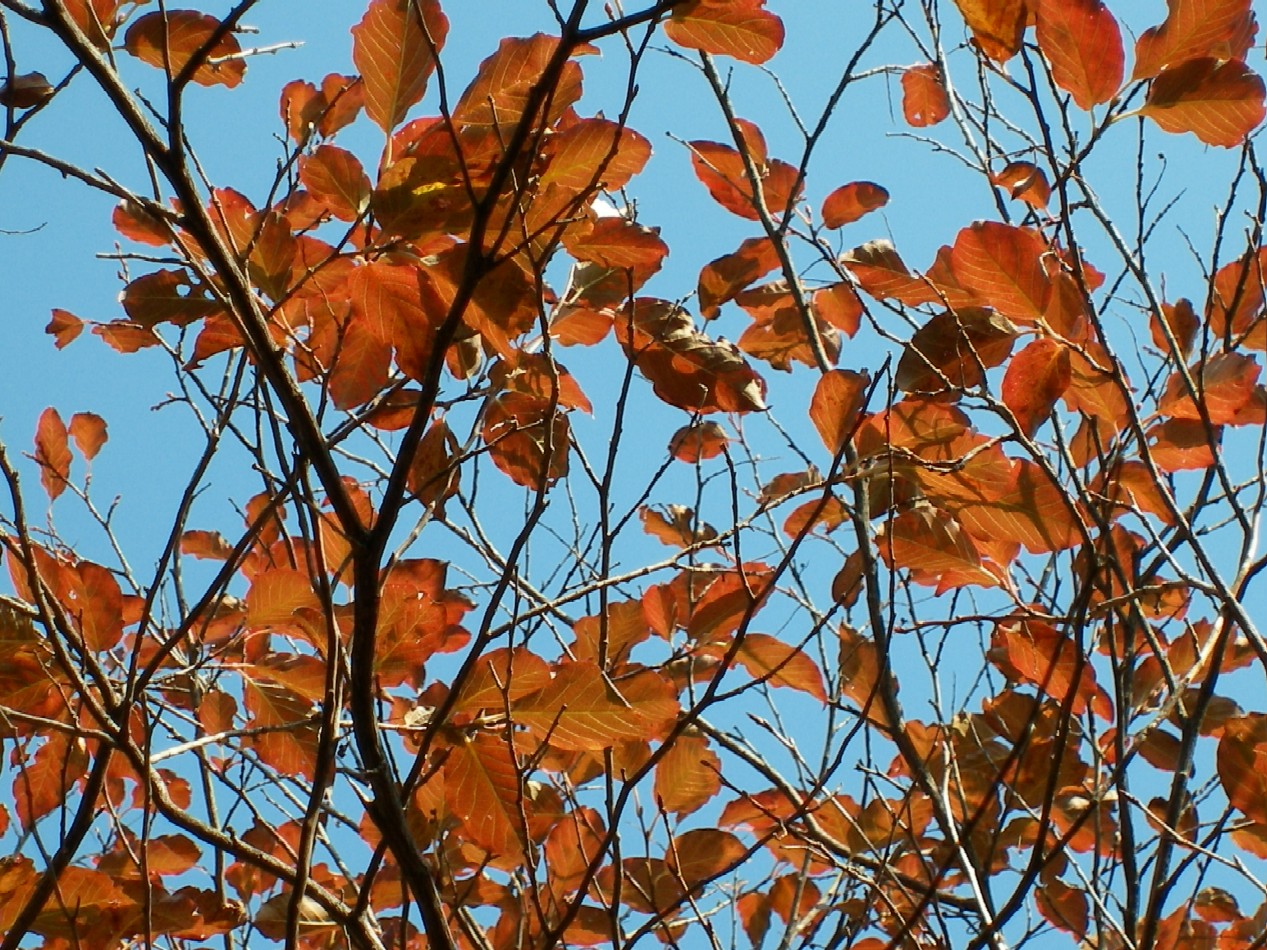 色付いた柿の葉やサクラの葉やカエデの葉を足元に見つけると遥か上に伸びて