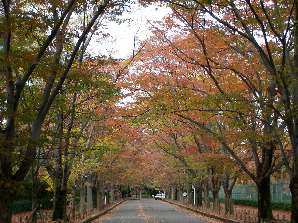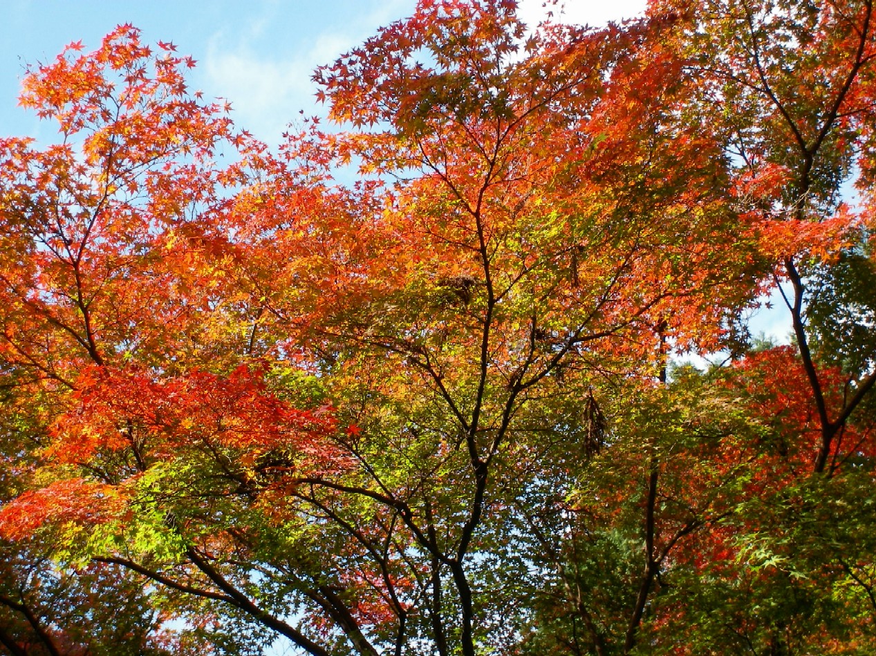 青空にイチョウの木は黄金色に輝いていたし、まだ青いもみじもそれなりに