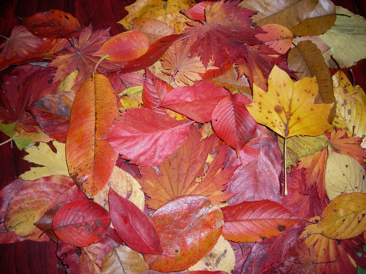 いろんな落ち葉が赤、黄、橙、と美しく、2人でたくさん拾ってきた。