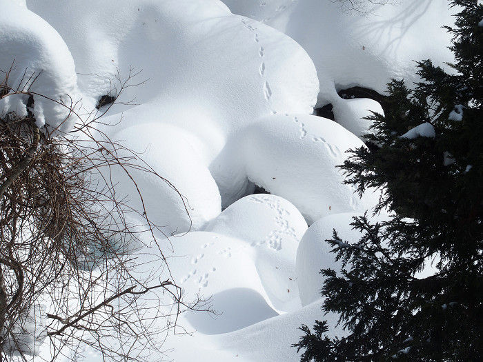 久々の雪山遊びが出来ると思うと次第に気持ちが高揚してきた。準備を整えいざ出発、以前はのっけからラッセルなんて当たり前だったのに、踏み固められた雪はツボ足でOK、もしもに備えてワカンは背負った。
