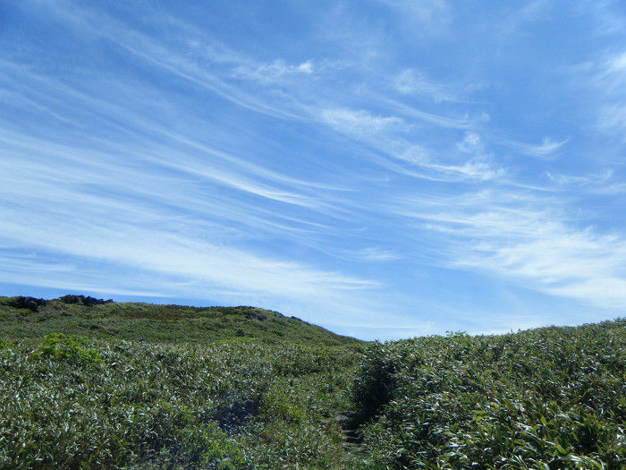 準備をして急登に向かうと暑くてすぐに汗が噴き出す。高度差にして300m位だろうか、登るに従い傾斜は増すような気がした。それにも増して灌木帯のため視界が効かないのが辛く、当然風も通らない。スピードが上がらず何人もの登山者に抜かれた。