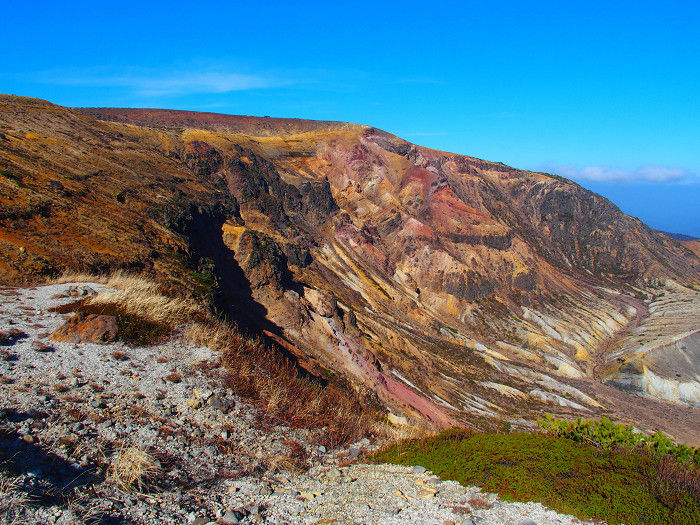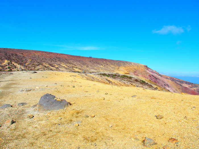 帰りも御釜を眺めながら下る