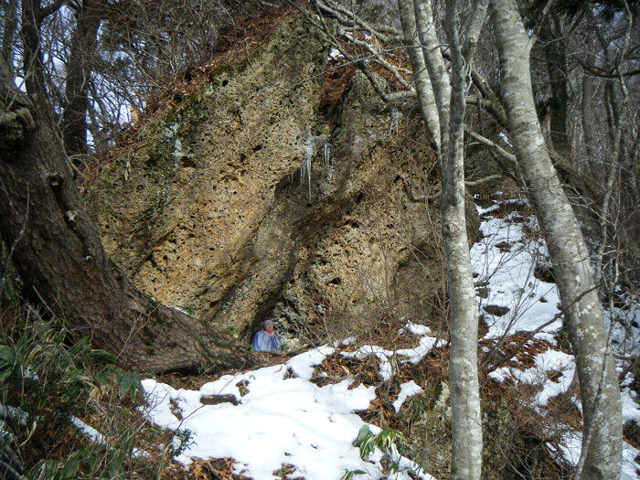 あっという間に駐車場に下山、温泉めがけて先を急いでいたら、林道途中で登山装備の単独女性がいてびっくり、厳冬期の経ヶ蔵で我らも含めて、この日は6人の登山者が訪れたことになる。