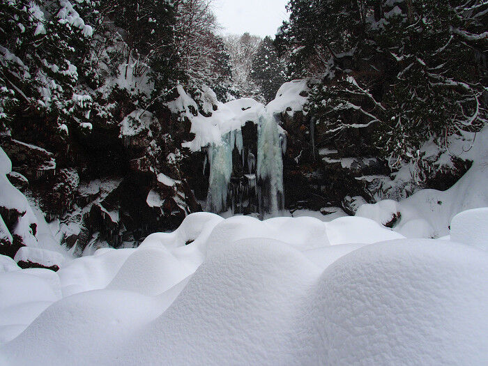 昼食後再度滝見物、積雪量が少ないので滝壺までは怖くて行けなかった。