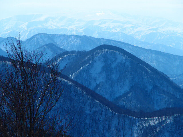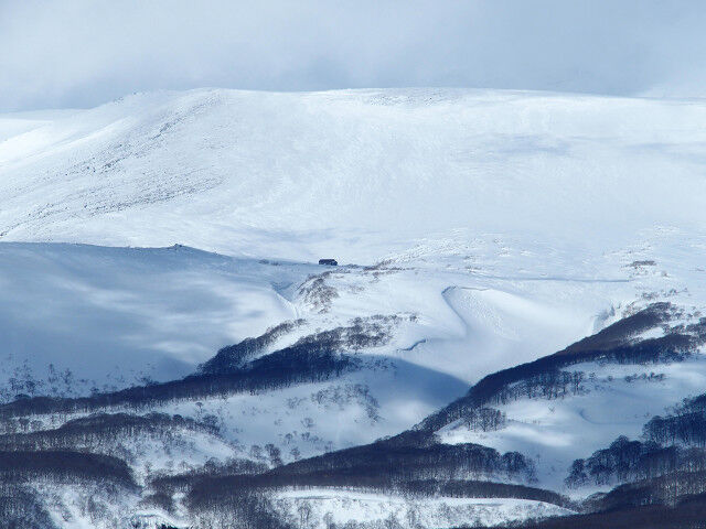 相方と賑やかにおしゃべりしながら登っていると、突然単独の先行者が眼前に現れた。大きなザックにピッケルまで持っている。あれま、軽装の我々は登る山を間違えたのかと一瞬思ったが、聞けば明日まで穏やかな天気が続きそうなので、山頂でテント泊するのだそうだ。なるほどそういう手もあったのかと感心した。この山は初めて来たので、先行者のトレースに大いに助けられたと言っていた。