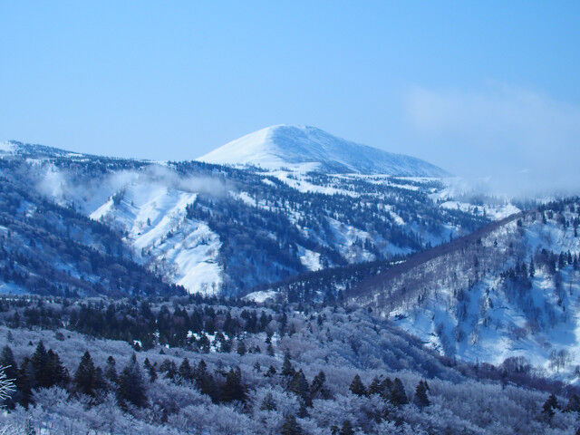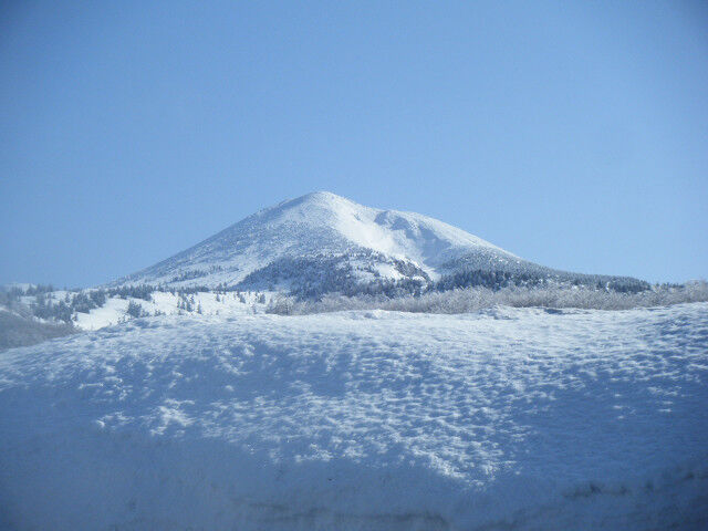 下界の車窓から仰ぎ見る八甲田の山並みは、青空に白く光り輝き、まさに神々の領域の感があった。