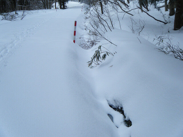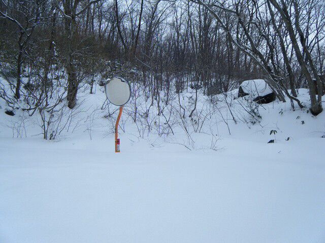 車道上はそれくらいあるが、路側の側溝は水がまだ流れているらしく、ほとんど積雪していない。こんな景色も初めてのような気がする。
