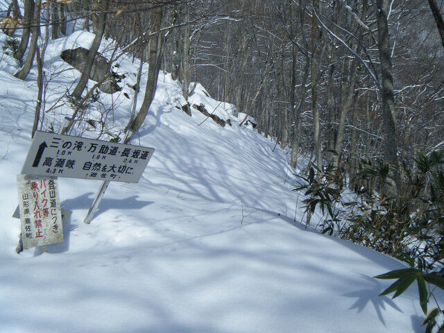 雪も少ないので一旦一の滝神社まで下りて沢沿いに進むのも良いかも知れないと一瞬思ったが、結局いつも通りに車道終点まで行ってトラバースすることにした。