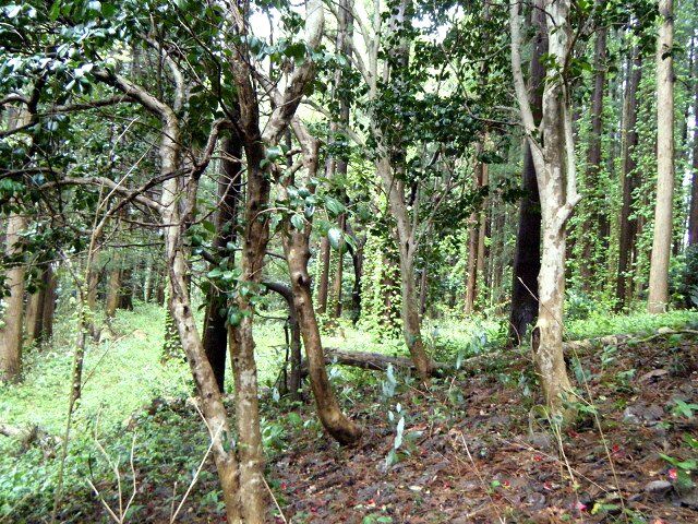 こちらが恐らくはシロダモの自然林なのではないかと思います。町指定の天然記念物の表示がありましたね。