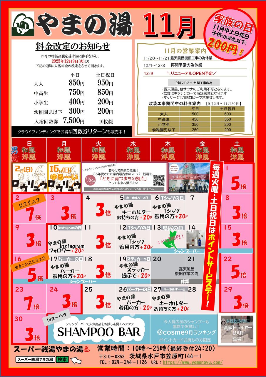 平素よりやまの湯をご利用頂き、誠にありがとうございます。
