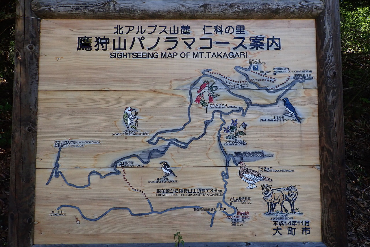 大町山岳博物館の駐車場に車を停め、鷹狩山トレッキングコース「たかがり小径」を進む。