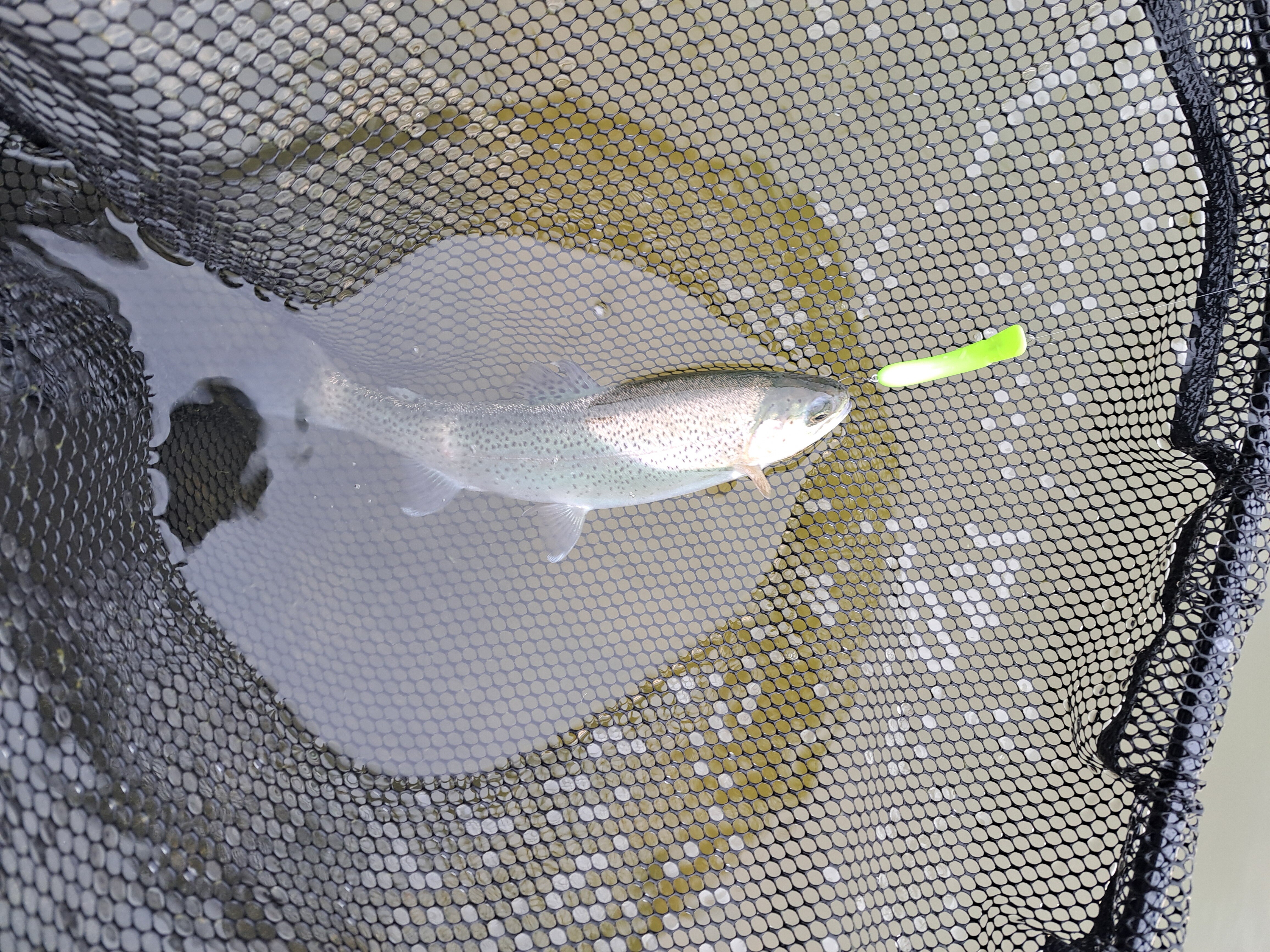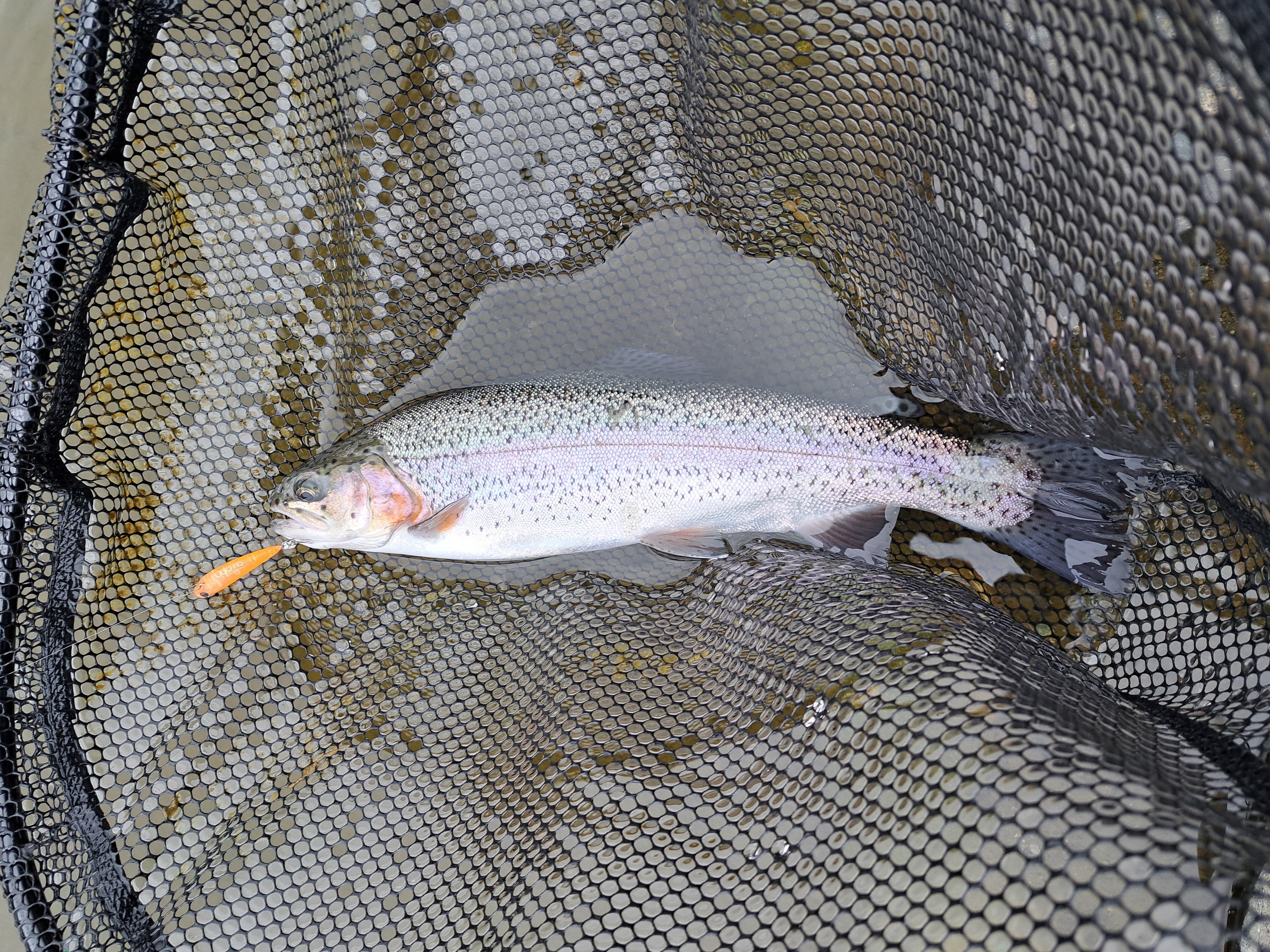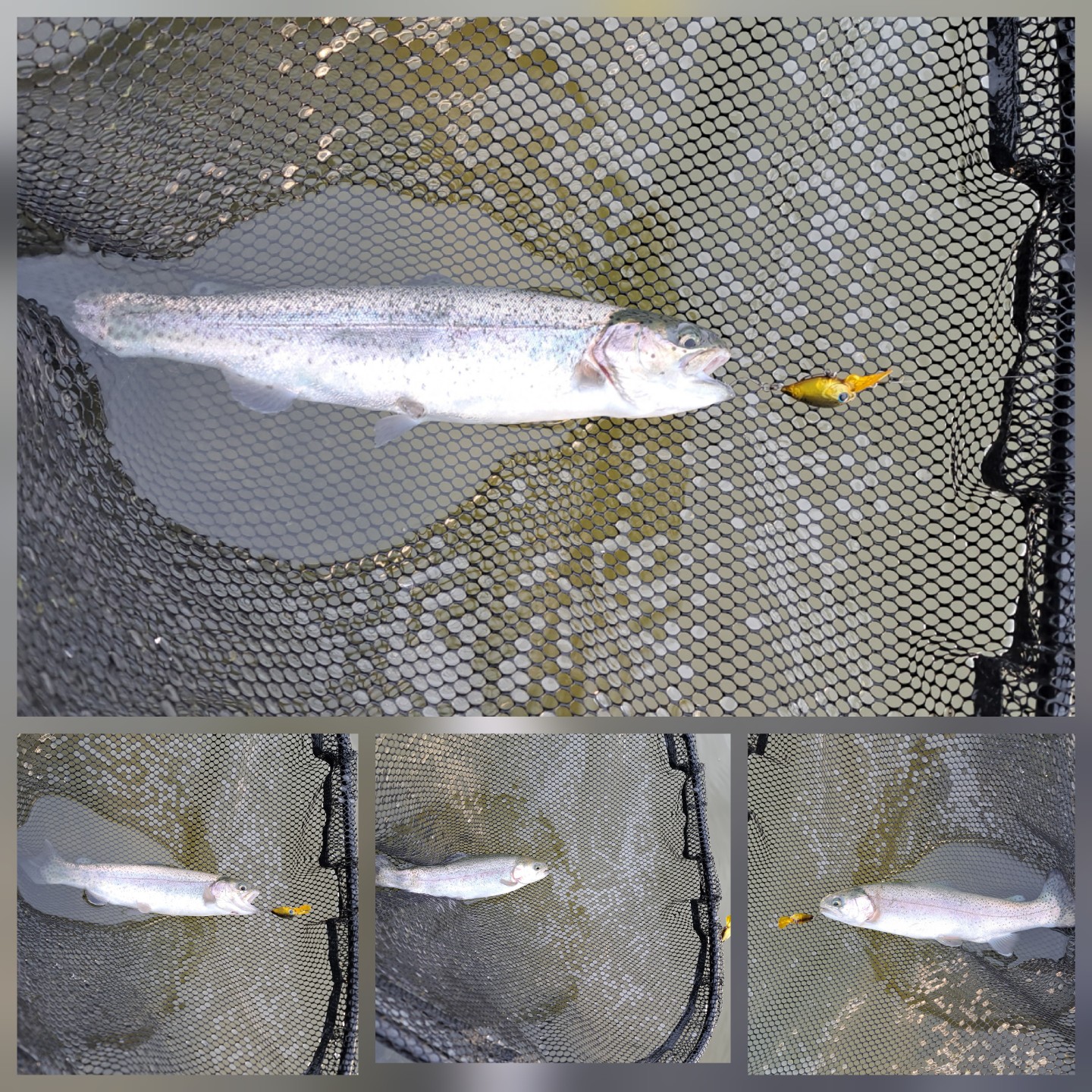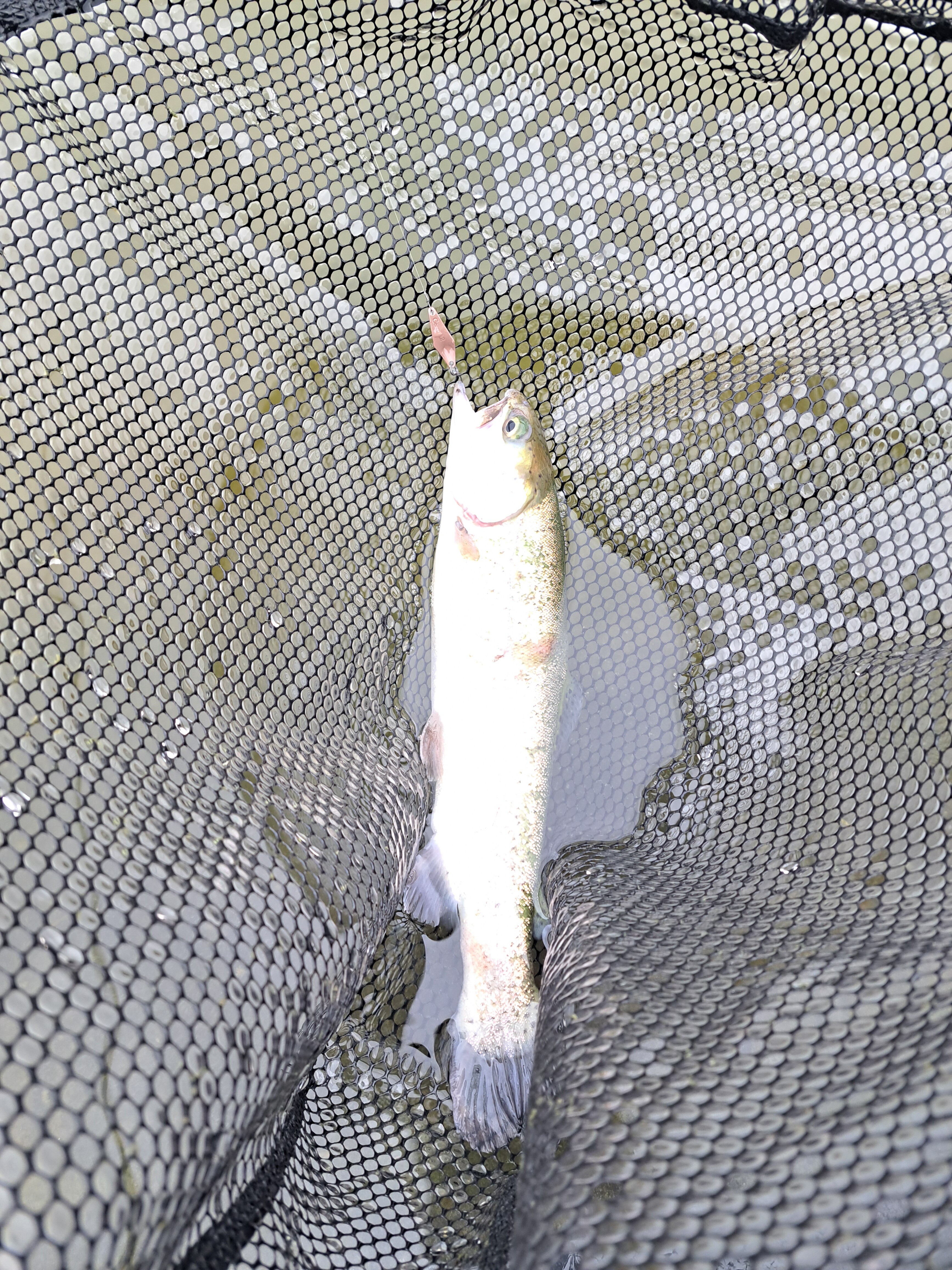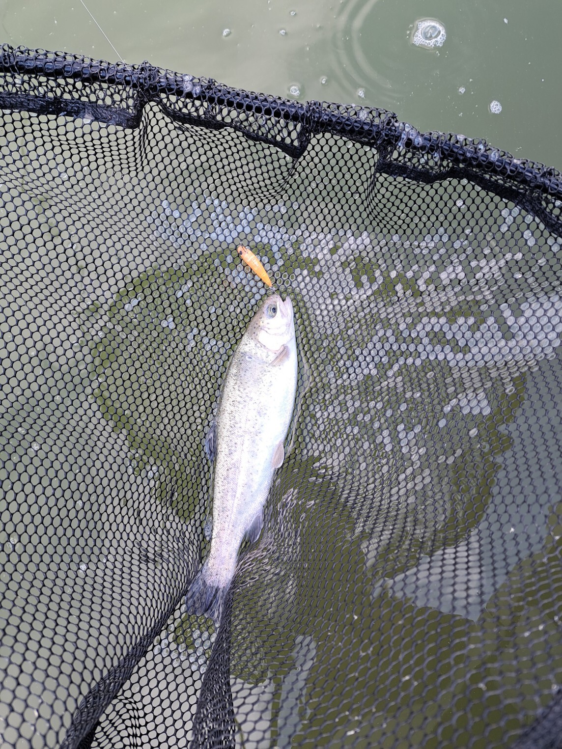 広範囲から興味を示した鱒が岸よりでバイトでした。