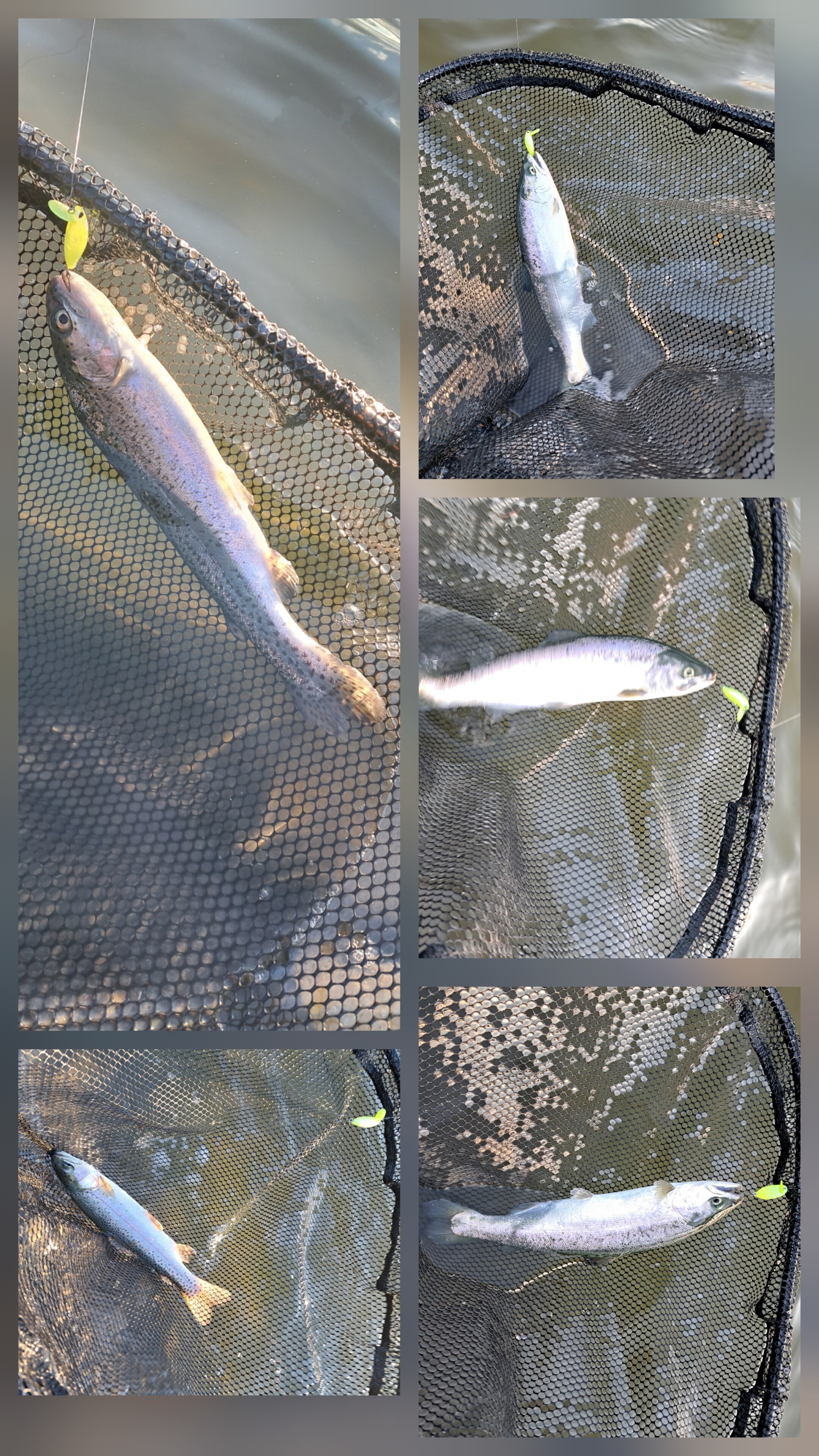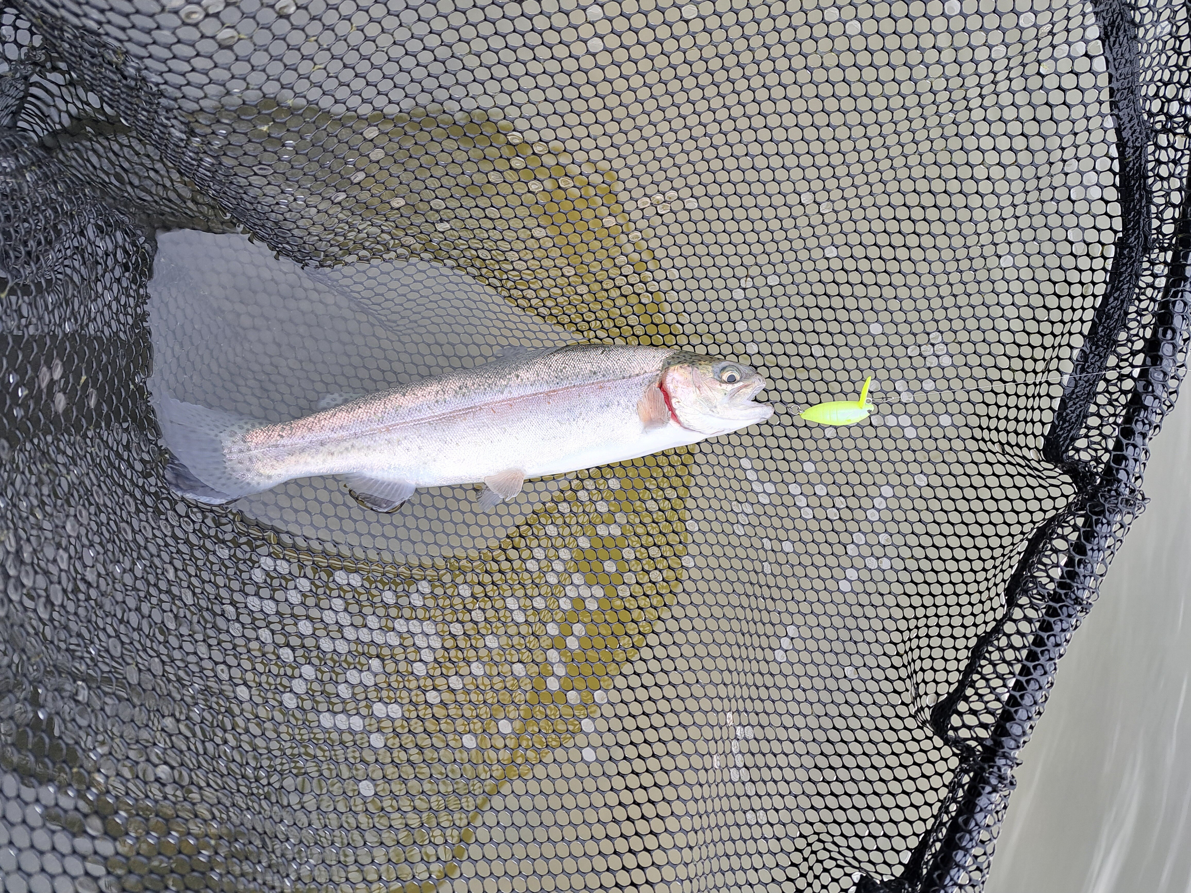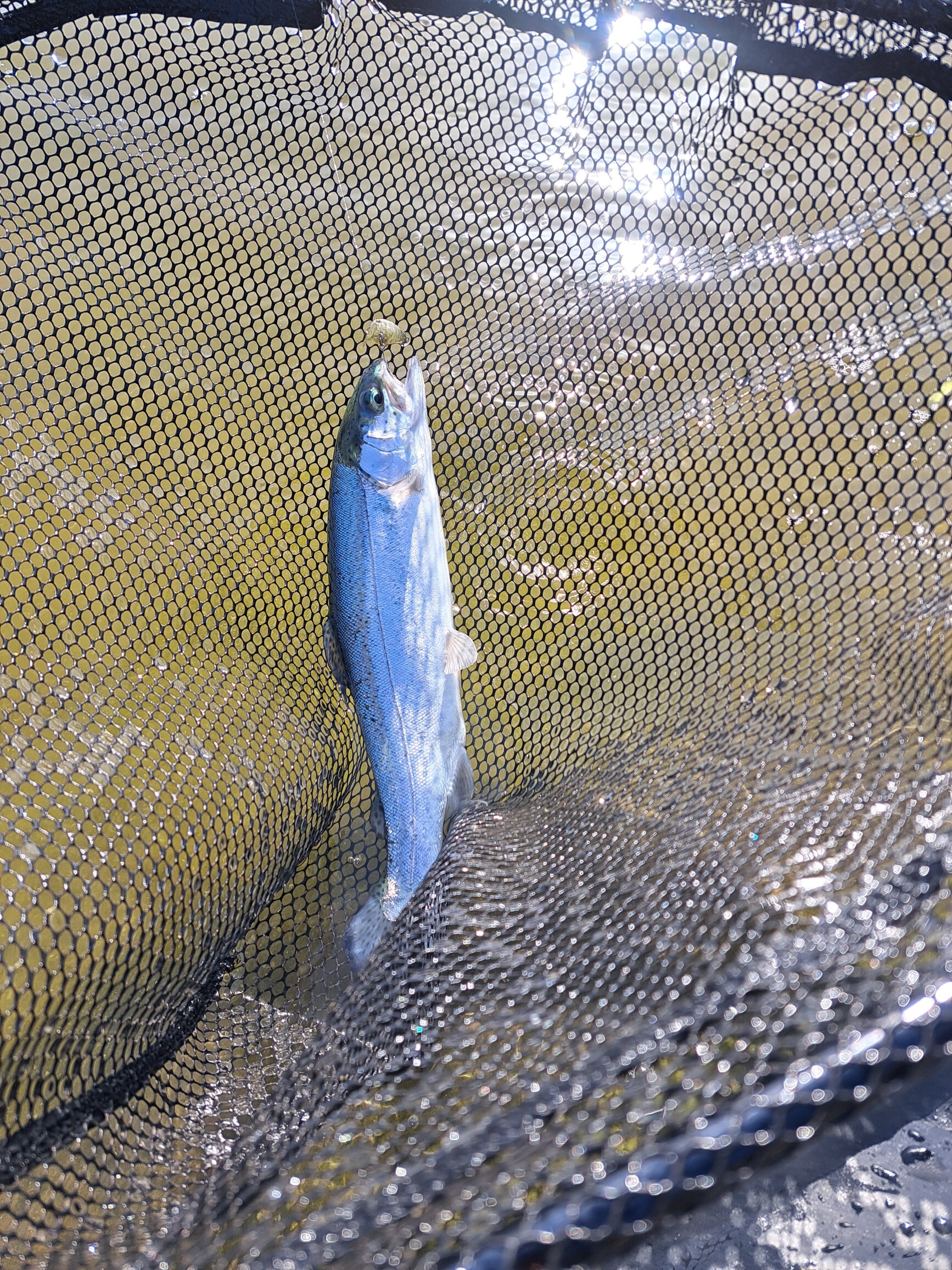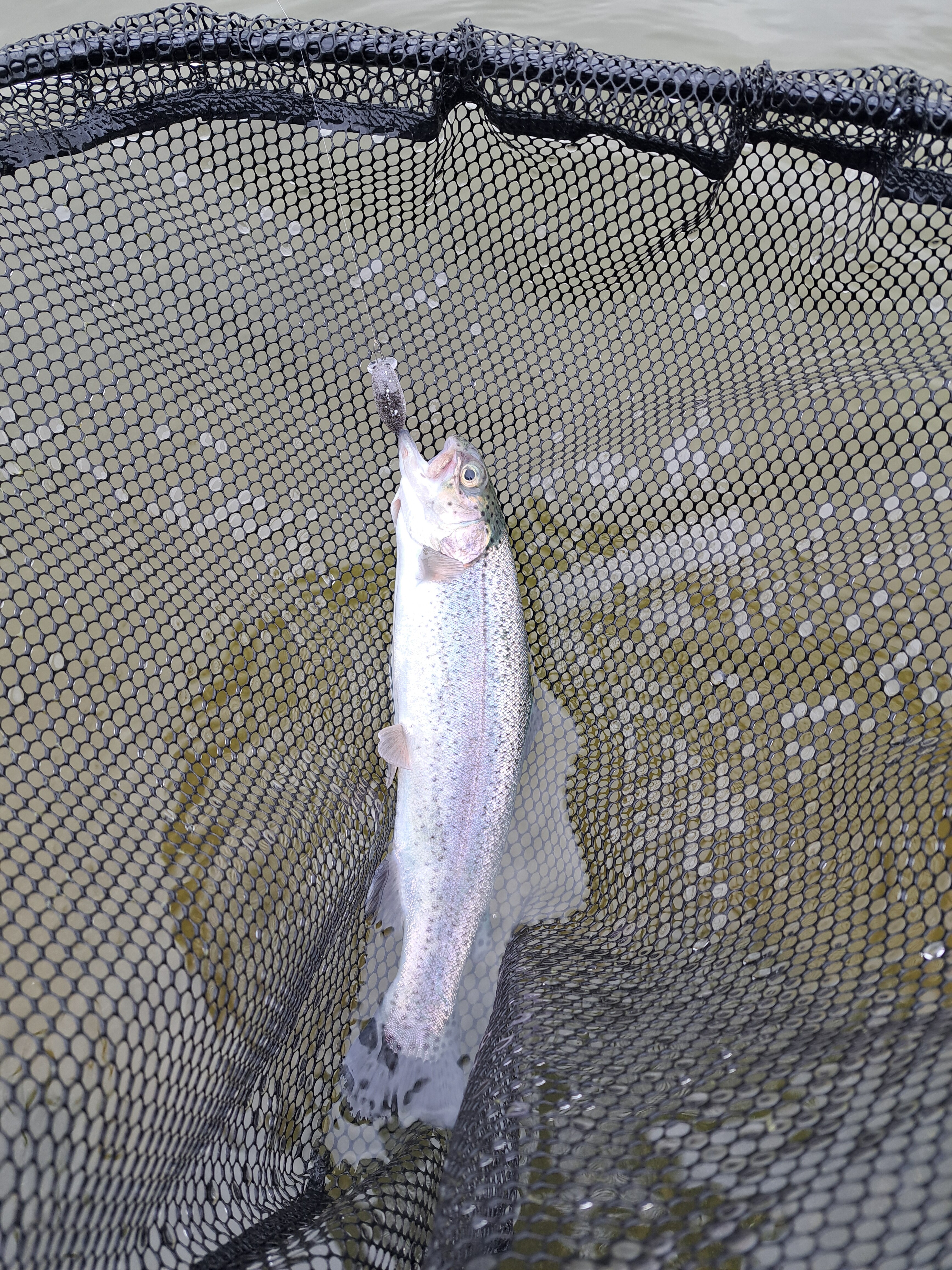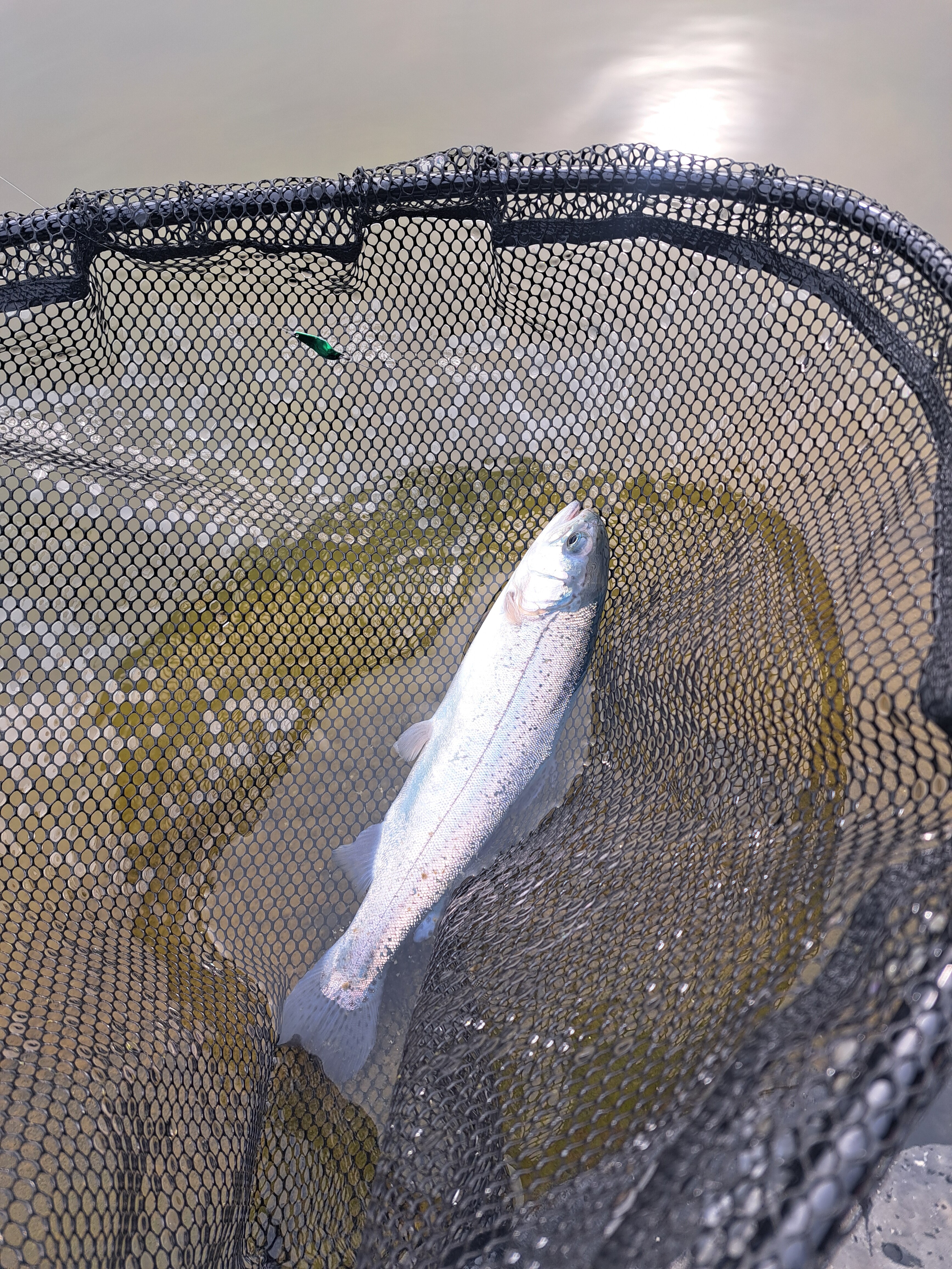 広範囲から興味を示した鱒が岸よりでバイトでした。