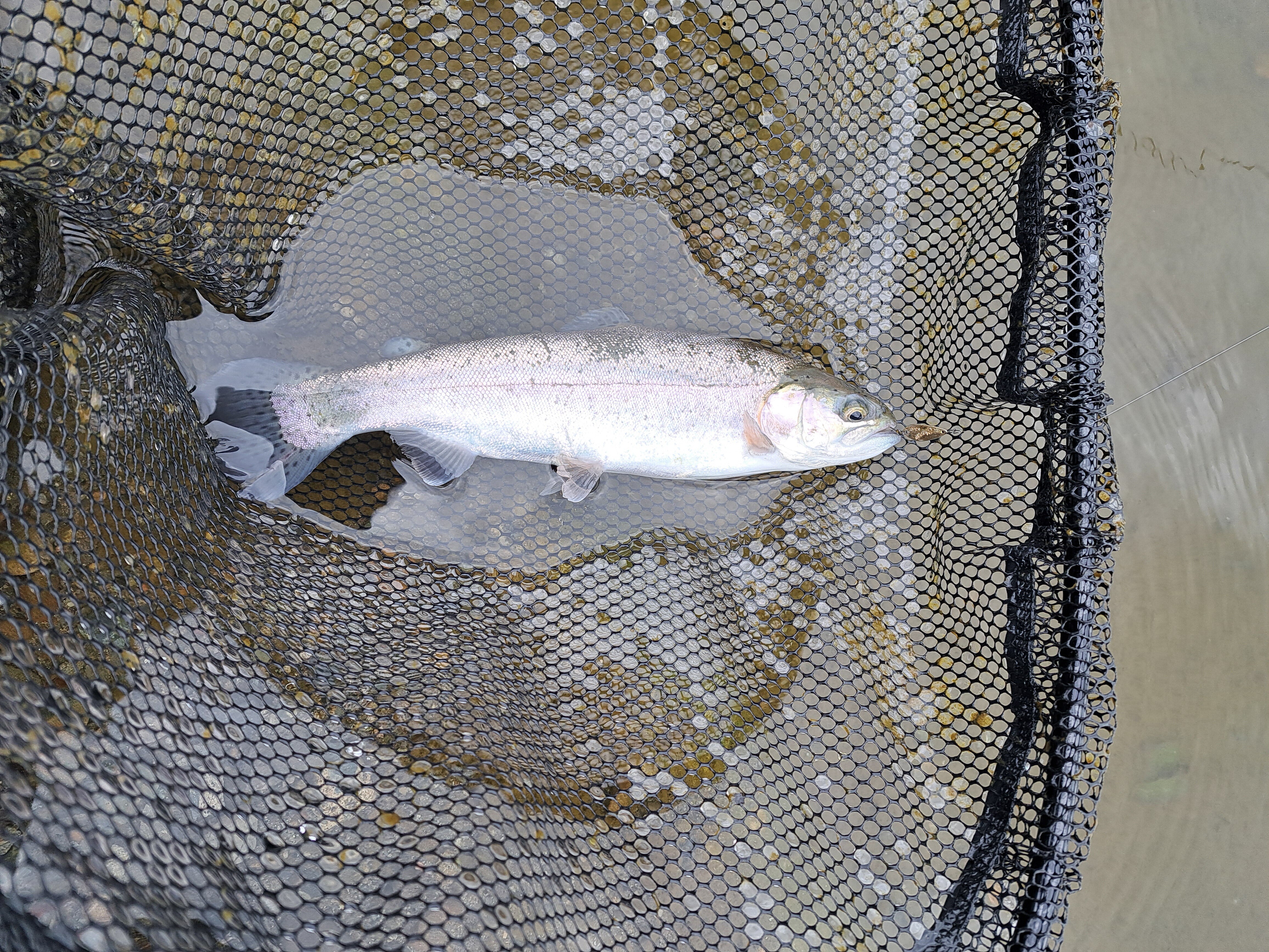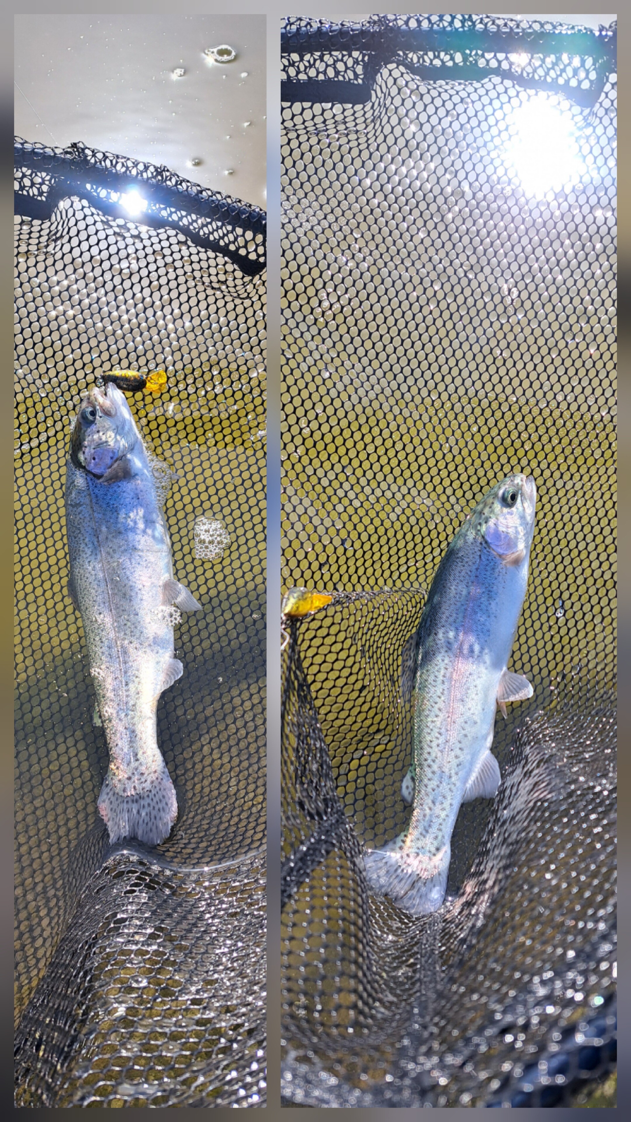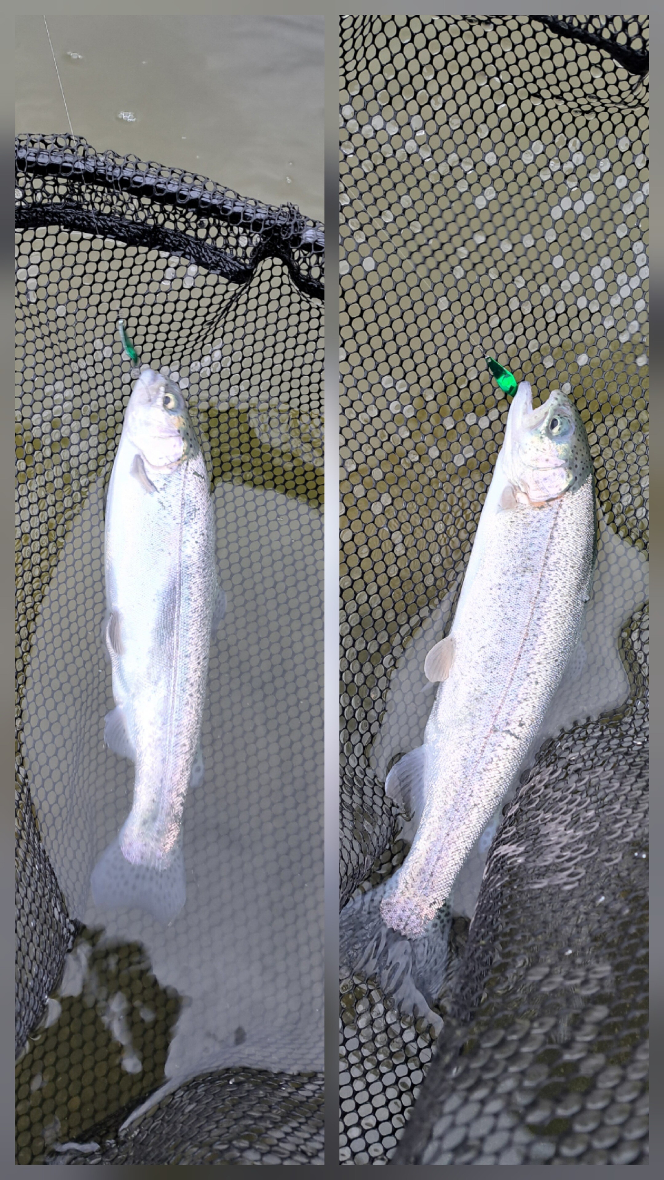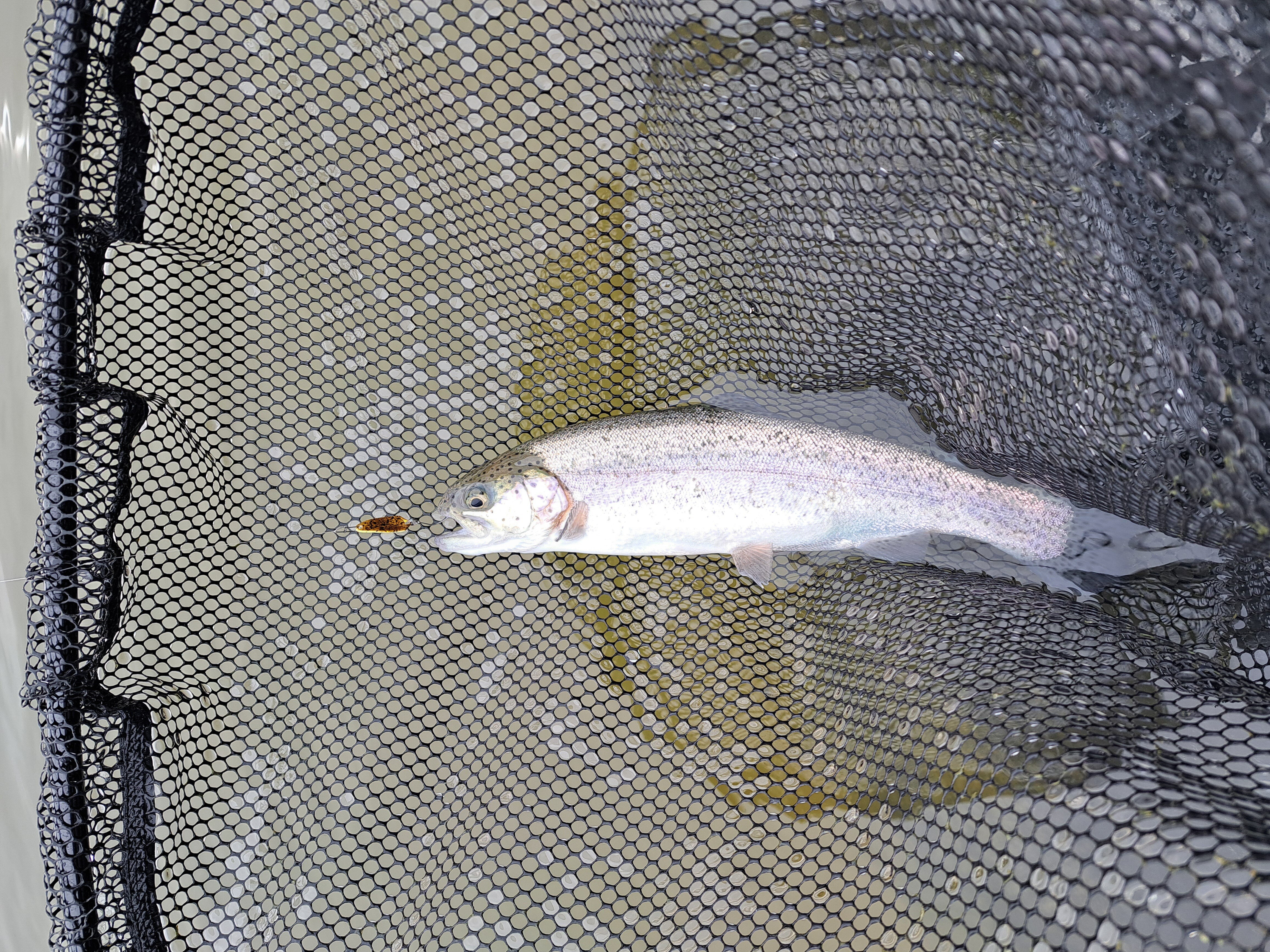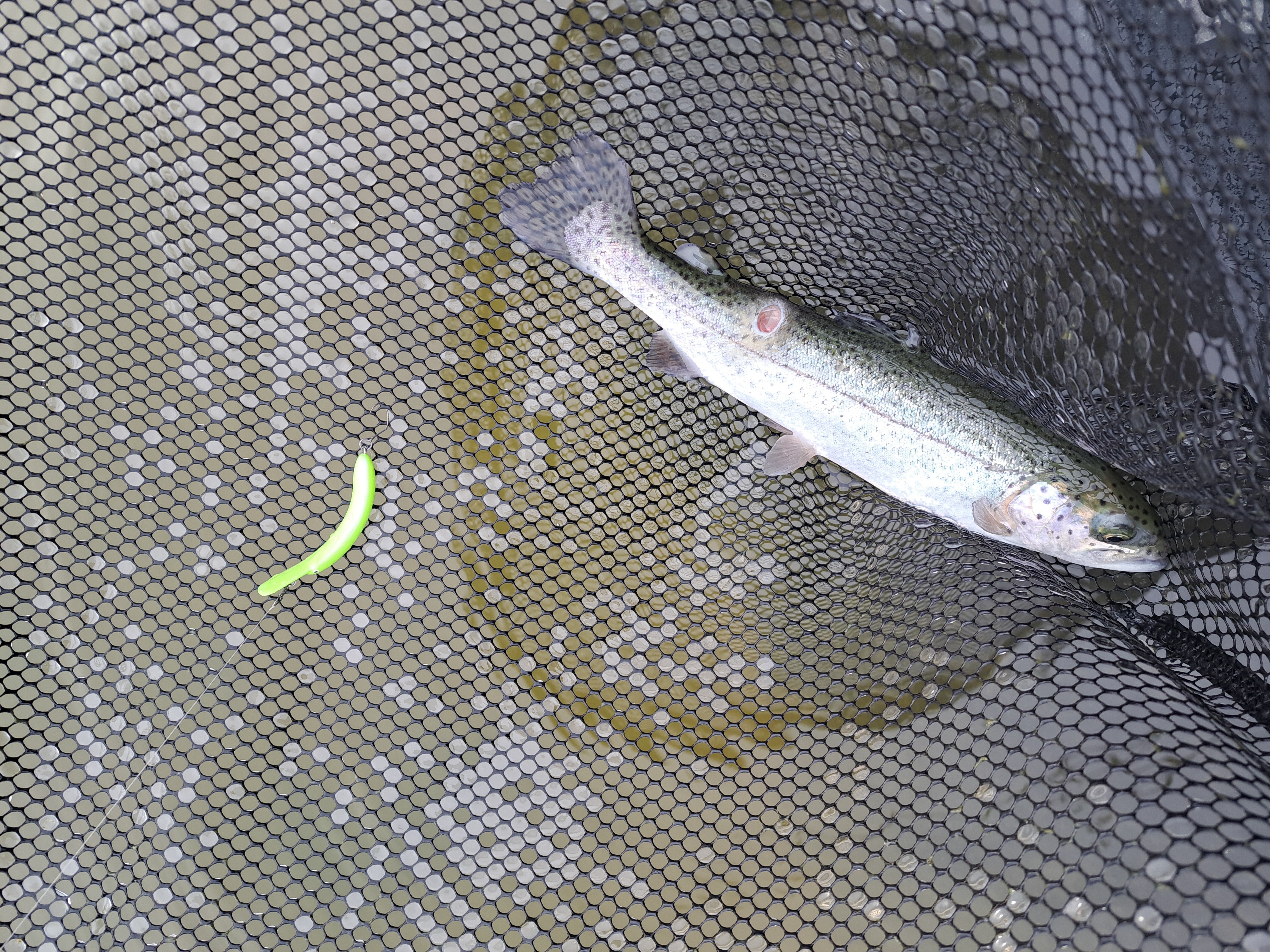 広範囲から興味を示した鱒が岸よりでバイトでした。