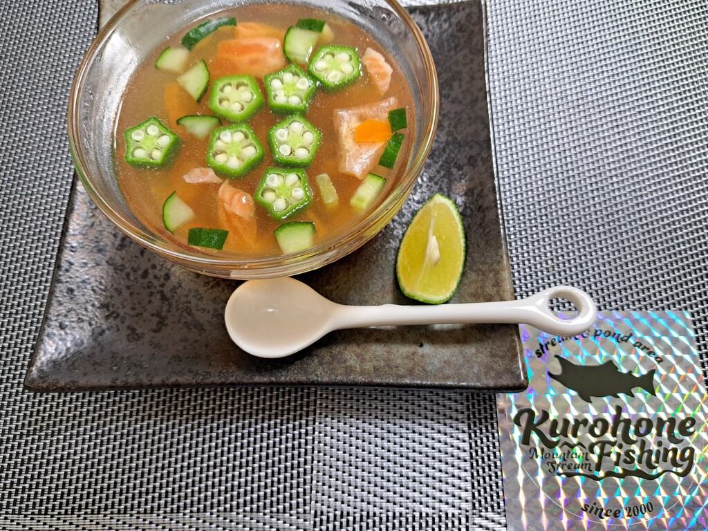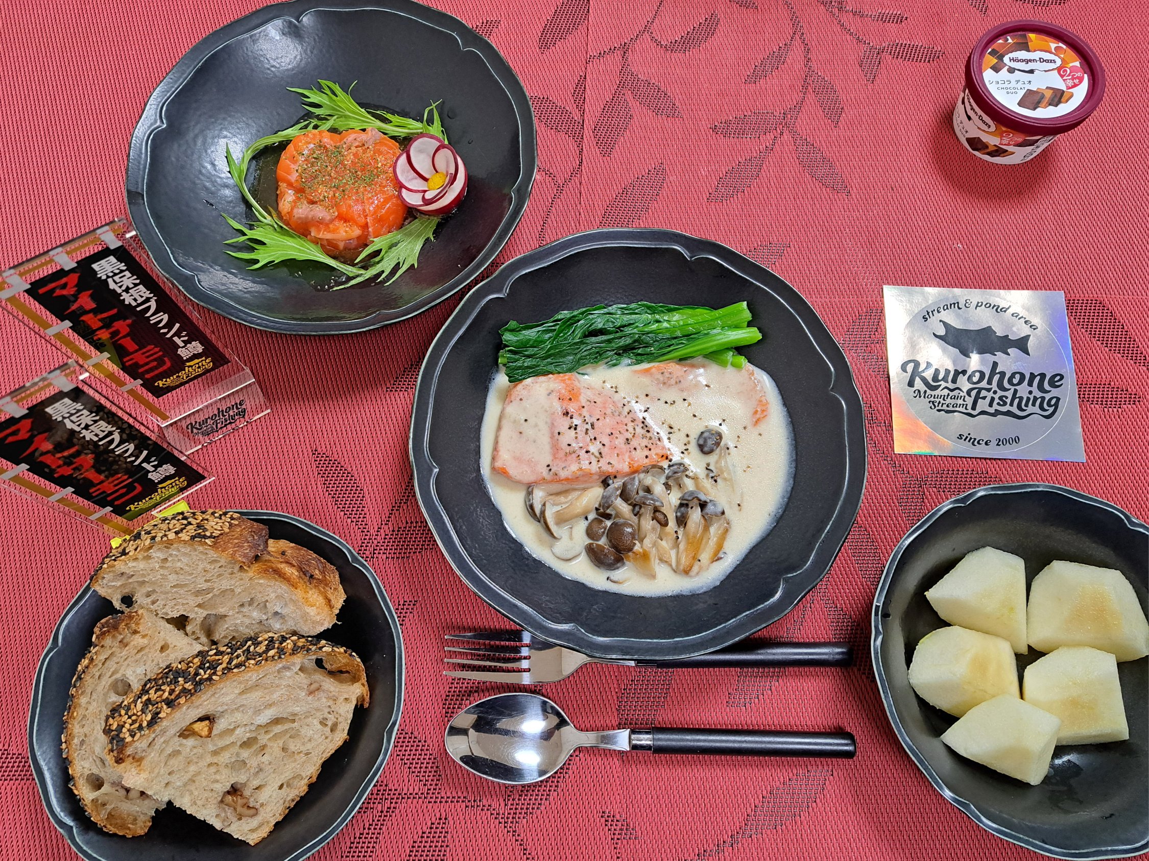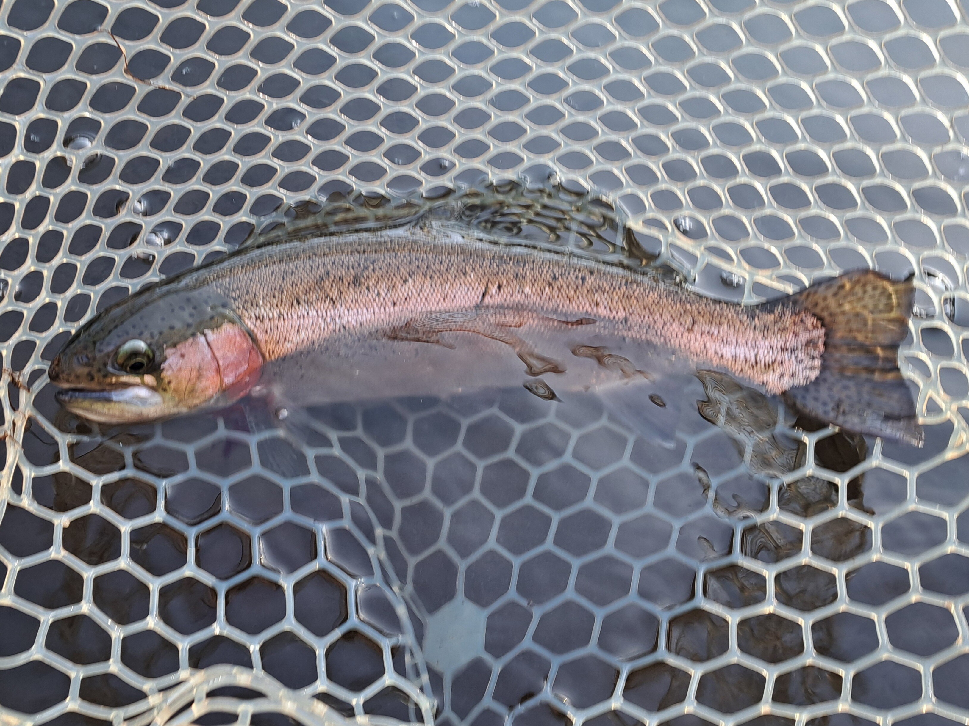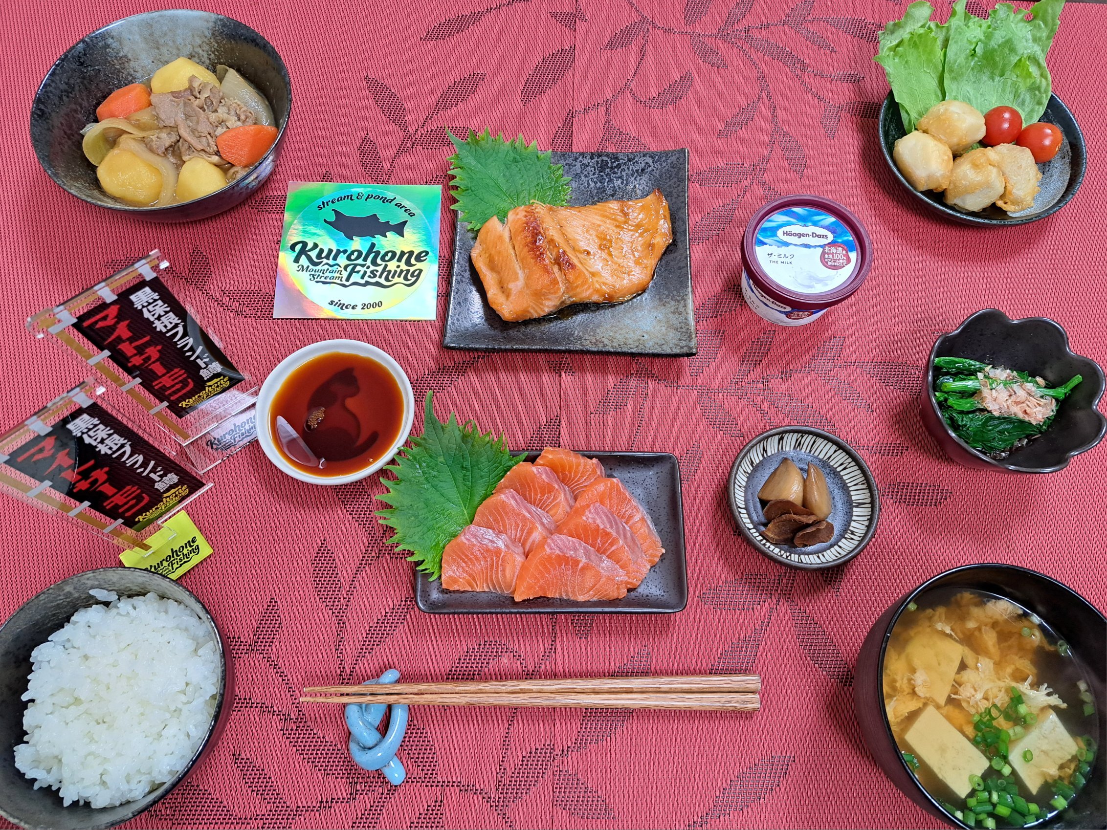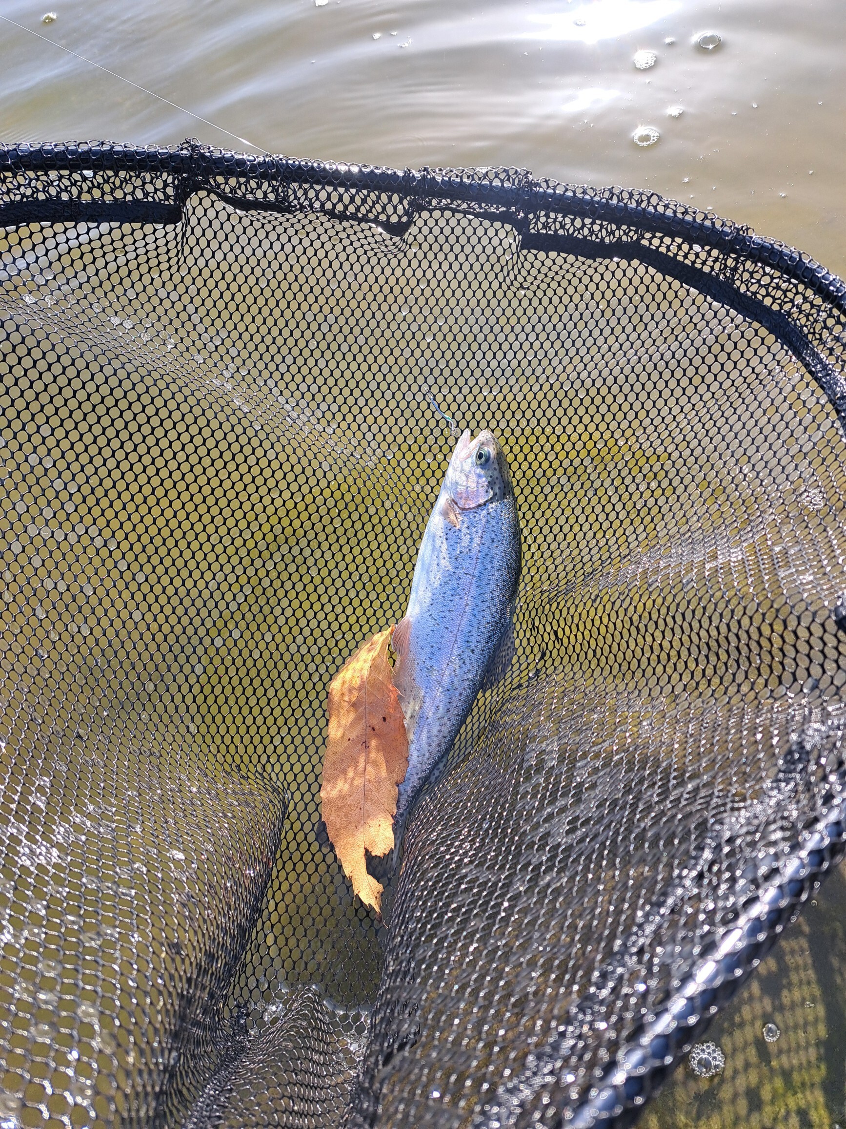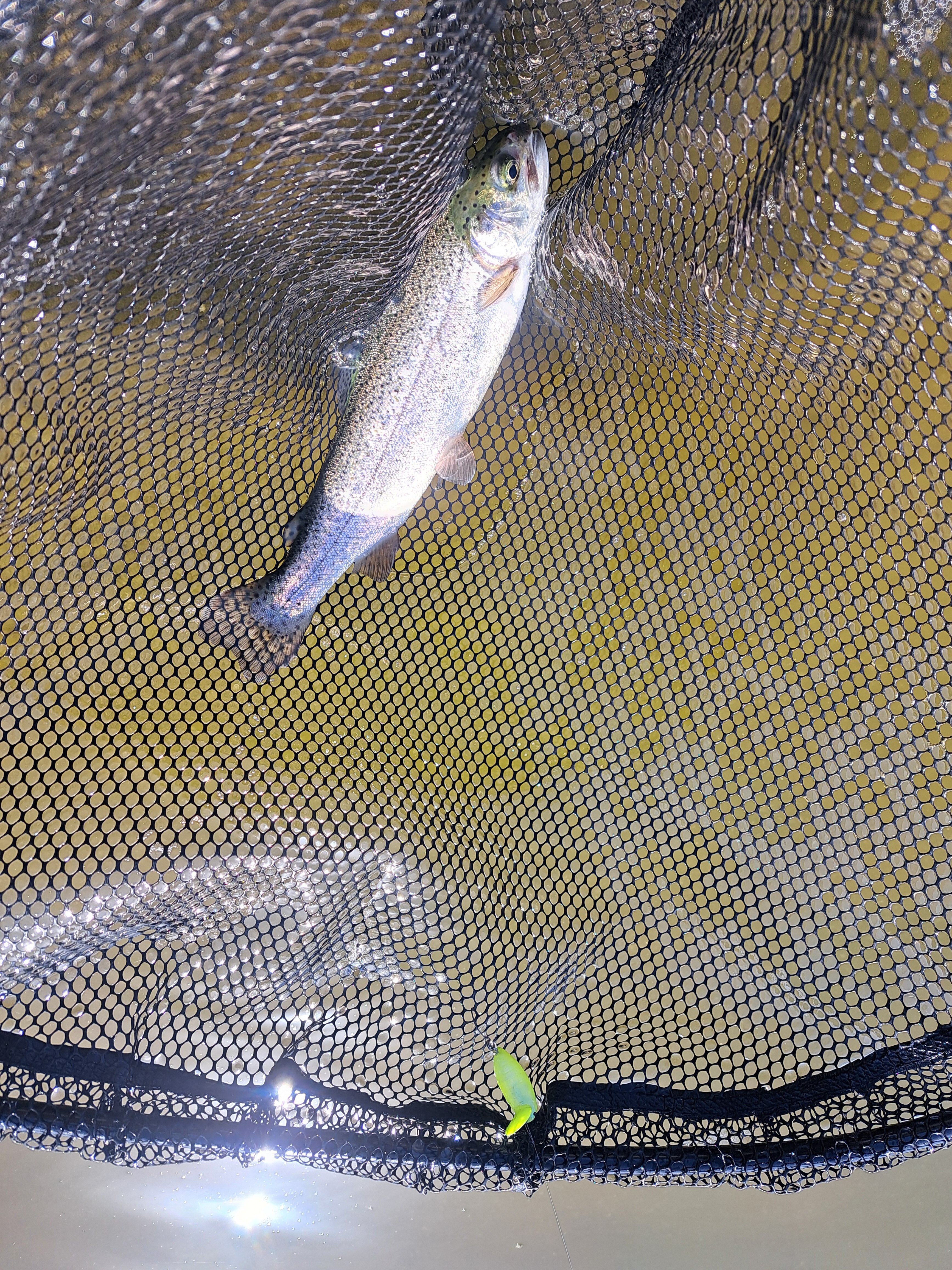 広範囲から興味を示した鱒が岸よりでバイトでした。