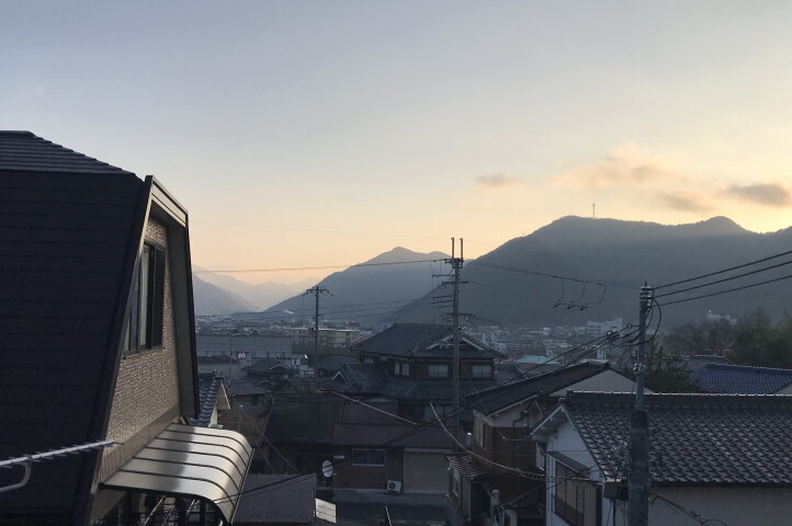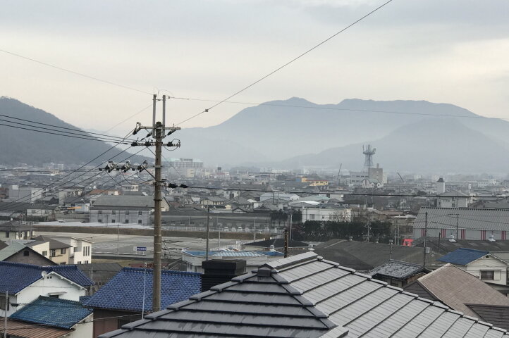 山裾は霧で少し白く見えます。