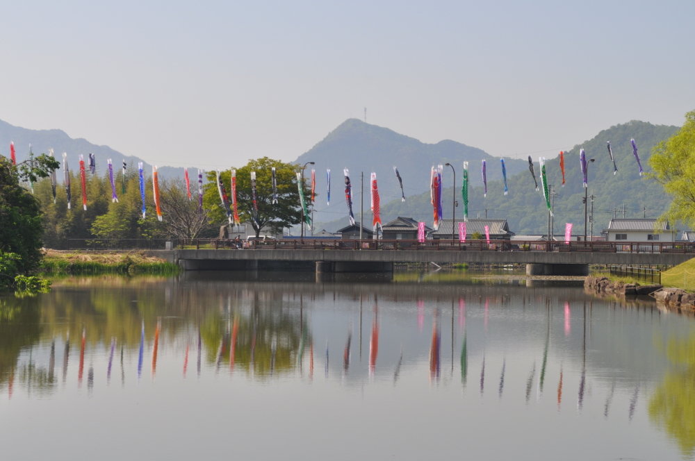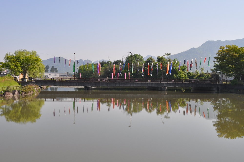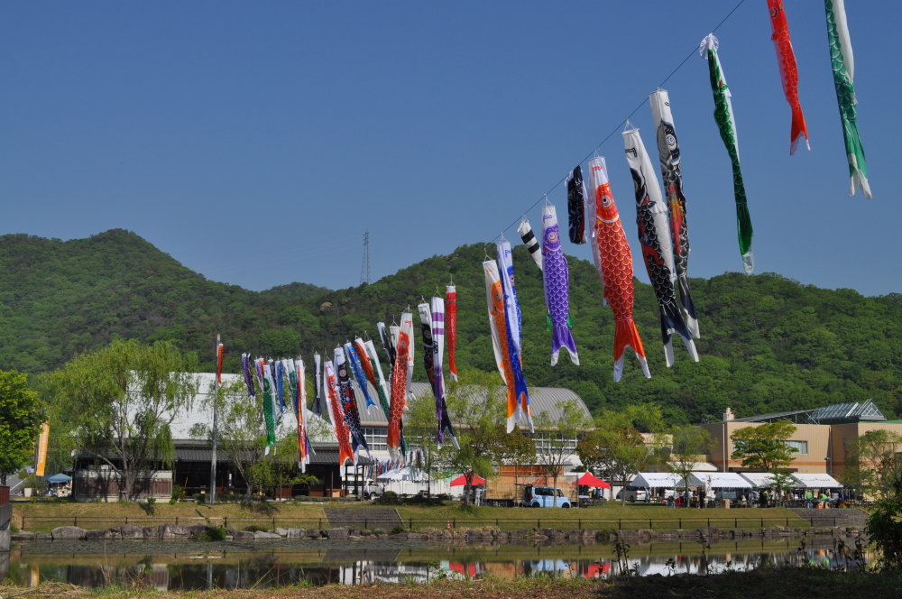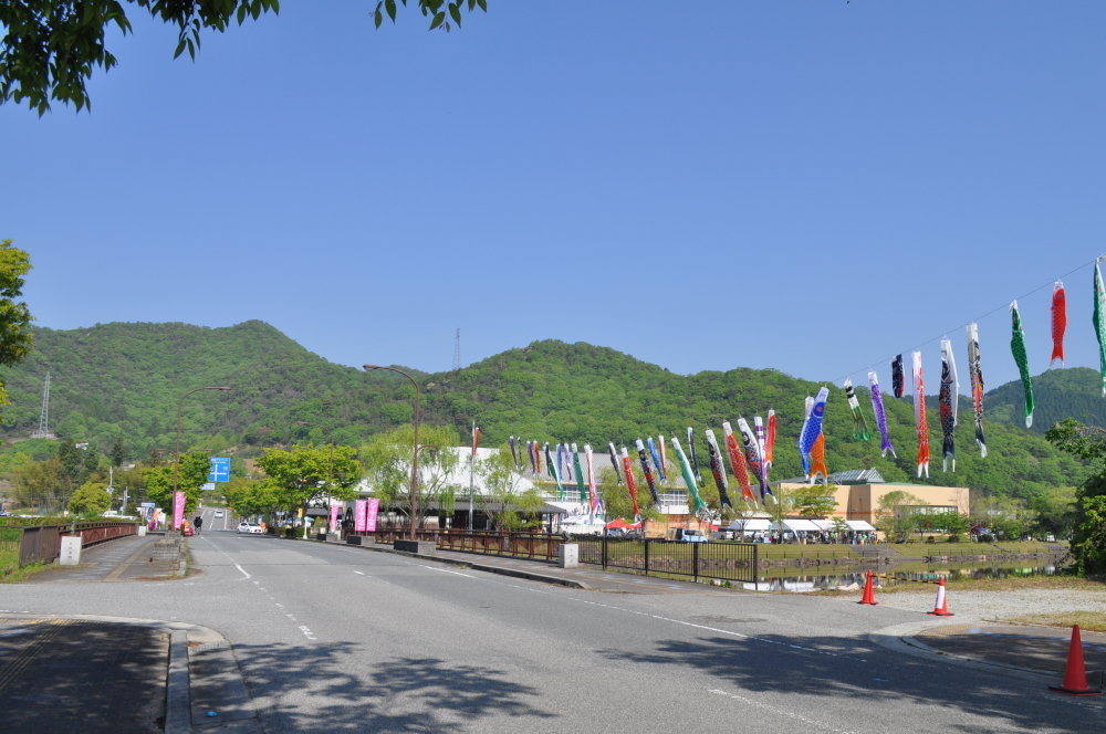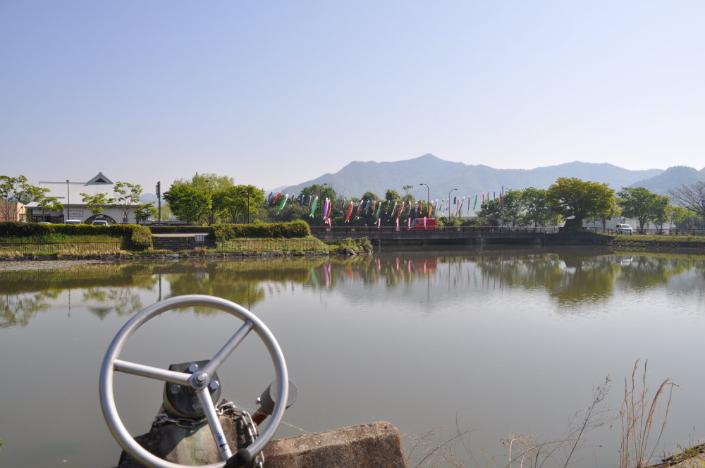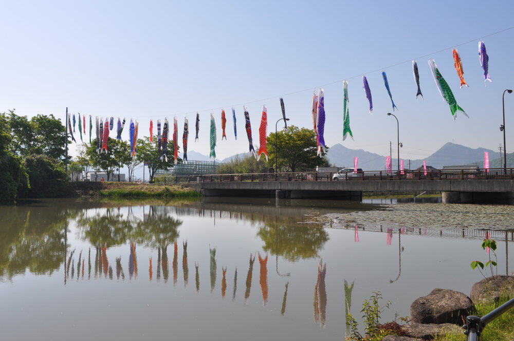 道の駅に隣接する天神池の上を泳ぐ、鯉のぼりを撮影しました~♪