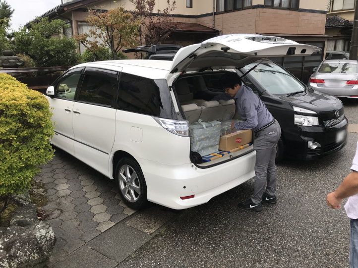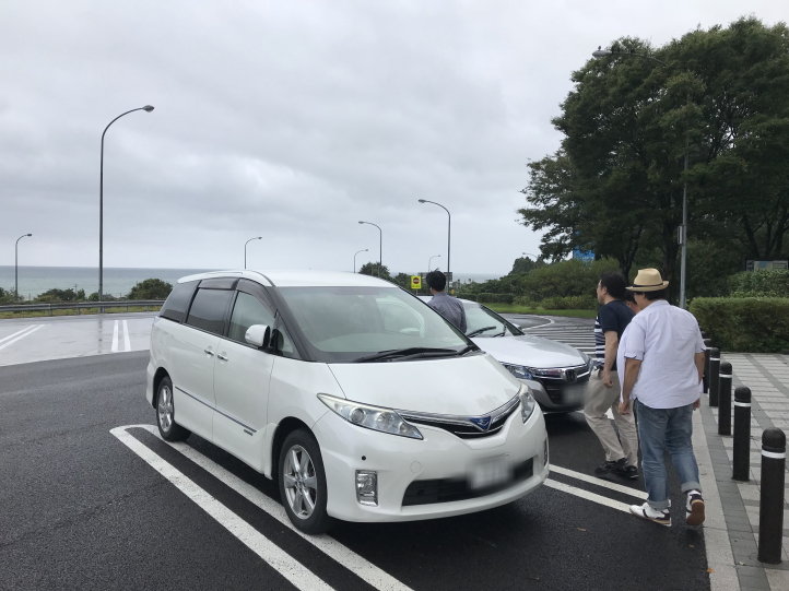 雨が降る中でしたが途中、サービスエリアで休憩や昼食などをご一緒しながら、午後2時半頃に石川県某所の中継地点に到着(笑)