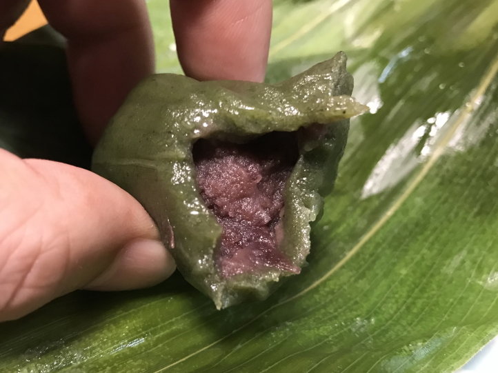 餡の入ったヨモギ団子を数枚のササの葉でくるんであったのですが、これを作れる方が少なくなっているらしく、トコトンさんがお願いして作って頂いたとの事。