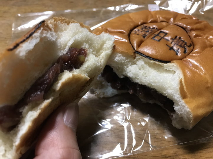 「越中境」の焼印が押された「ここでしか買えない」アンパンだったのでつい買っちゃったけど、中身は山パンのアンパン(爆)