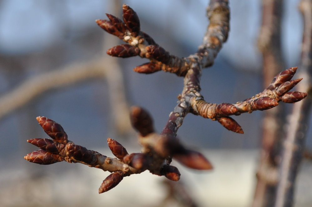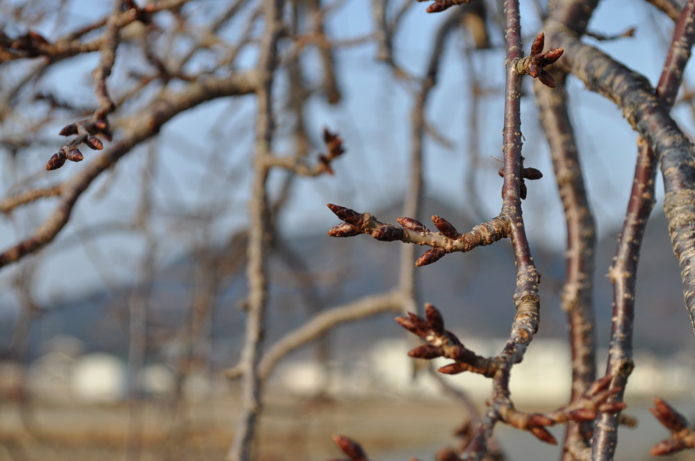 枝先には、暖かな春を待つ固いつぼみが沢山見られます。