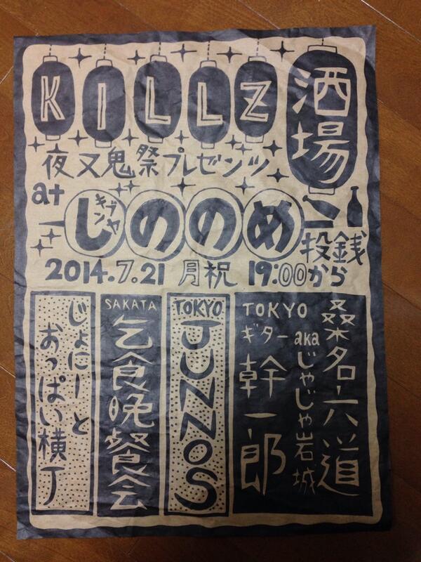 2014年07月02日 夜叉鬼プレゼンツ 『KILLZ酒場』 カテゴリ:イベント詳細 -2014- コメント数:0 コメント by yasyaoni 夜叉鬼プレゼンツ 投げ銭ライブ『KILLZ酒場』2014/07/21(月/祝)@きぶん屋しののめ(秋田駅前)19:00 START出演者桑名六道(ジャジャ岩城) ゲストギター:幹一郎(東京)JUNNOS (東京)乞食晩餐会(酒田)じょにーとおっぱい横丁 「イベント詳細 -2014-」カテゴリの最新記事 < 前の記事次の記事 > コメント コメントフォーム 名前 コメント 評価する リセット リセット 顔 星 投稿する 情報を記憶
