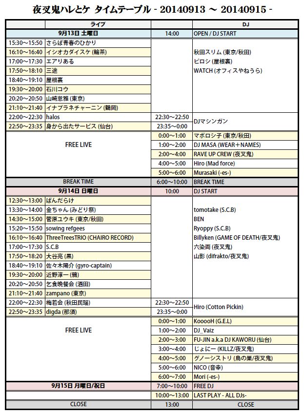 9月13日 土曜日 14:00 OPEN / DJ START